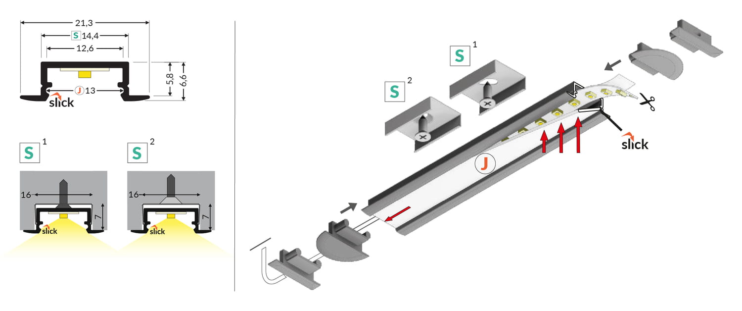 Aluminiowy profil do taśm LEDTaśmy LED to elastyczne paski wyposażone w diody LED, które emitują światło. Dzięki swojej elastyczności i niewielkim rozmiarom mogą być instalowane w miejscach trudnodostępnych lub wymagających precyzyjnego oświetlenia. W zastosowaniach funkcjonalnych znajdują miejsce jako dodatkowe oświetlenie robocze w kuchniach, łazienkach i biurach. Są również wykorzystywane w reklamie i ekspozycjach, podświetlając witryny sklepowe i ekspozycje towarów. Na zewnątrz używa się ich do podświetlania elewacji budynków, tarasów i ogrodów, a w motoryzacji do oświetlenia wnętrz samochodów i podświetlania podwozi. Dlaczego warto zastosować profil do taśmy LED?Umieszczenie taśmy LED w profilu aluminiowym przynosi liczne korzyści. Poza estetycznym wyglądem i możliwością tworzenia ciekawych kształtów, takich jak ciągłe linie na suficie, ścianie czy meblach, profil aluminiowy pełni ważną funkcję ochronną. Chroni taśmę LED przed uszkodzeniami mechanicznymi, takimi jak zarysowania, uderzenia czy przypadkowe zgniecenie, które mogłyby wpłynąć na jej wydajność i trwałość. Dodatkowo, profil aluminiowy działa jak radiator, efektywnie odprowadzając ciepło generowane przez diody LED. Dzięki temu, diody nie nagrzewają się nadmiernie, co nie tylko poprawia ich wydajność, ale także znacząco wydłuża ich żywotność. Zastosowanie klosza w profilu zapewnia równomierne rozpraszanie światła, redukując efekt olśnienia i tworząc przyjemne, równomierne oświetlenie. W efekcie, profil aluminiowy z kloszem nie tylko poprawia funkcjonalność i trwałość taśmy LED, ale również podnosi walory estetyczne każdego wnętrza. Jak zamontować taśmę LED do profilu?Każda taśma LED jest wyposażona z drugiej strony w taśmę klejącą dwustronną, co znacznie ułatwia montaż. Aby zamocować taśmę LED w profilu aluminiowym, wystarczy odkleić jedną stronę taśmy klejącej i przycisnąć ją do wnętrza profilu. Ten prosty proces zapewnia solidne przymocowanie taśmy LED, eliminując potrzebę stosowania dodatkowych klejów czy narzędzi. Jak zamontować profil do taśm LED?Montaż profili LED może być realizowany na różne sposoby, w zależności od rodzaju profilu i specyfiki instalacji.