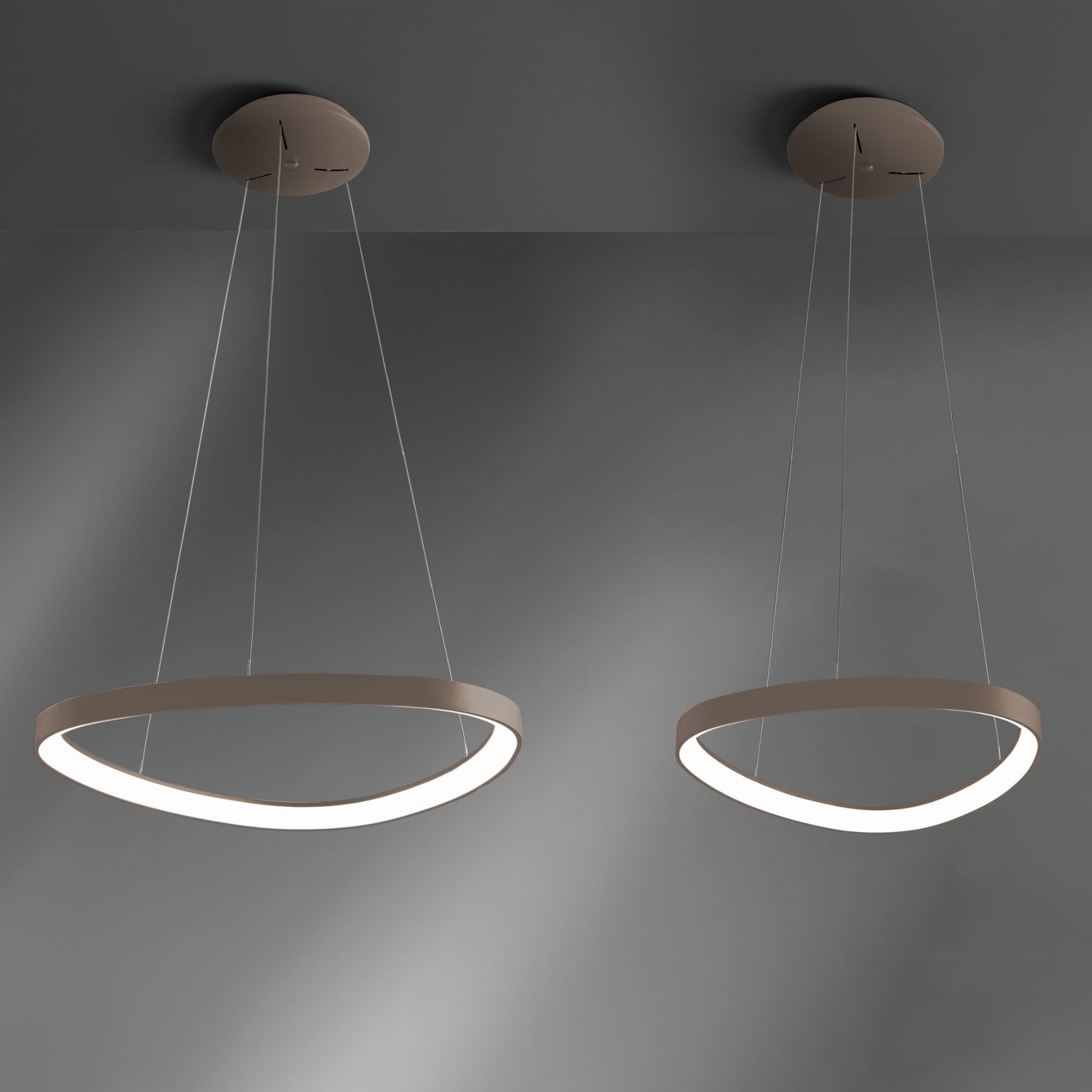 Beżowo piaskowa lampa wisząca zagięta obręcz Vivida International 0083.30.SA DIM WN Lifering LED 48W 3000K/4000K 61cm x 200cm ściemnialna