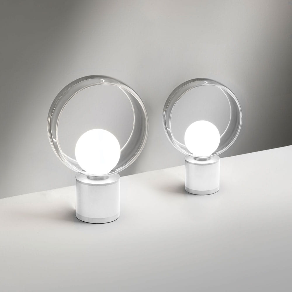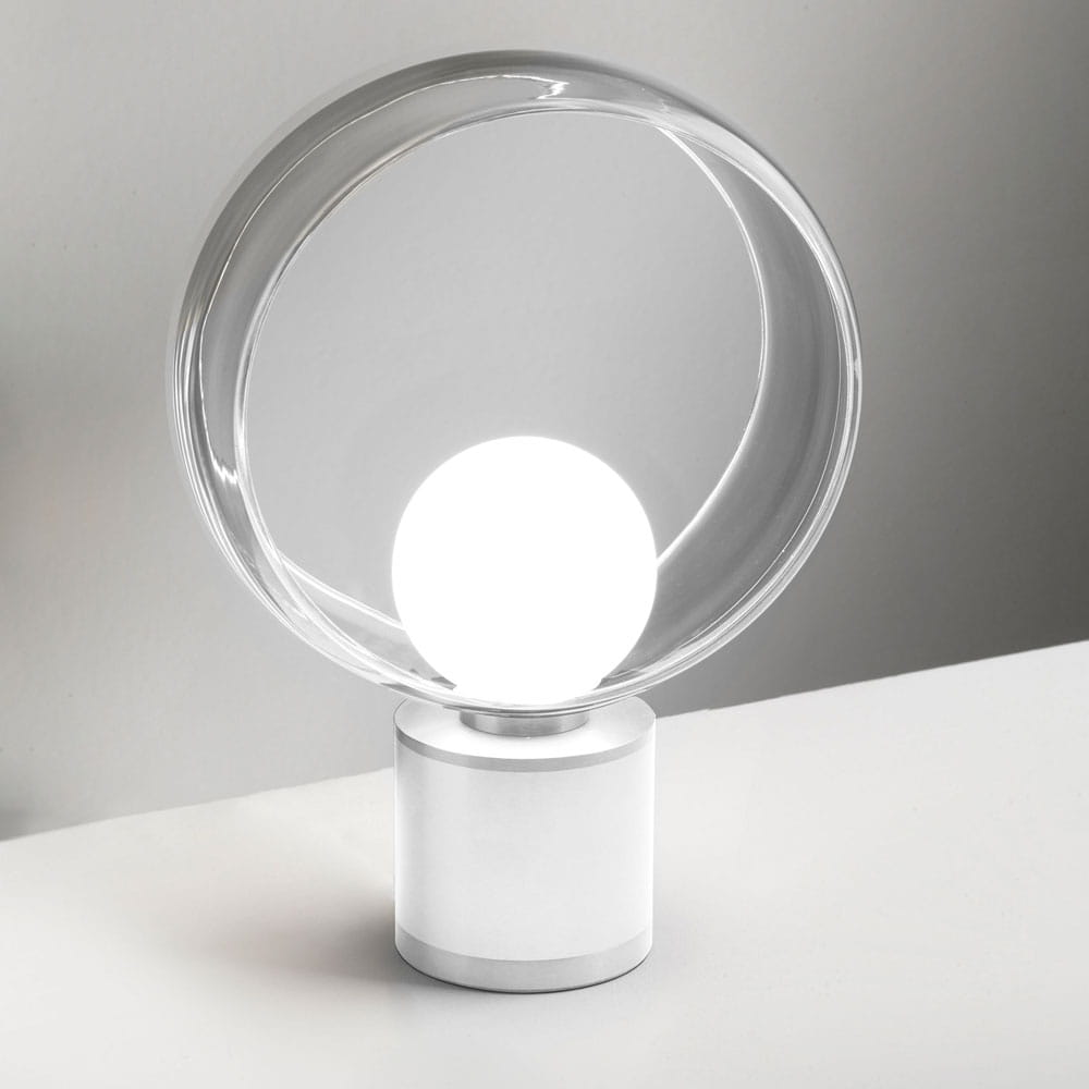 Biała lampa stołowa z szklaną obręczą Vivida International 0082.41.BI Cosmit G9 32cm