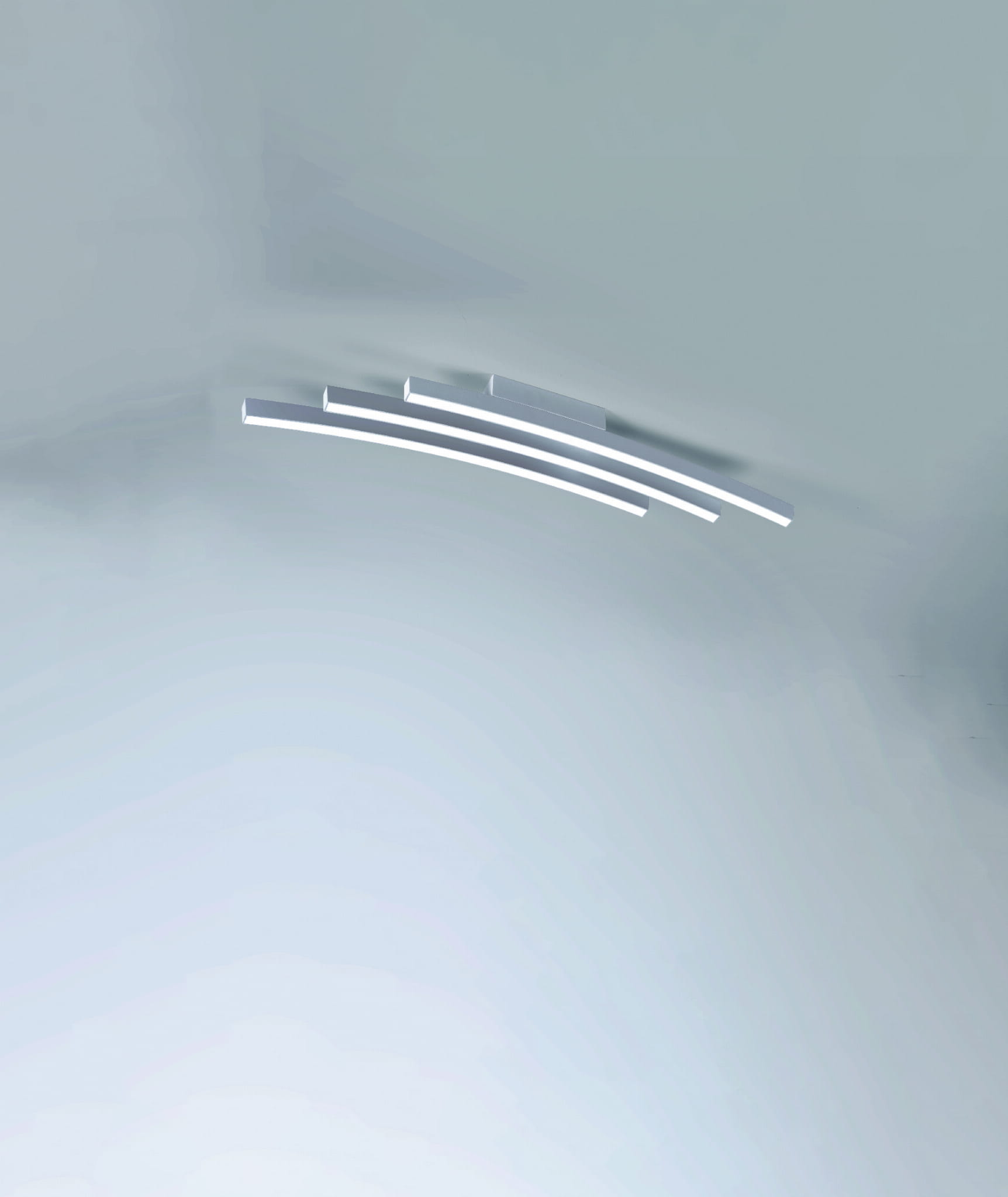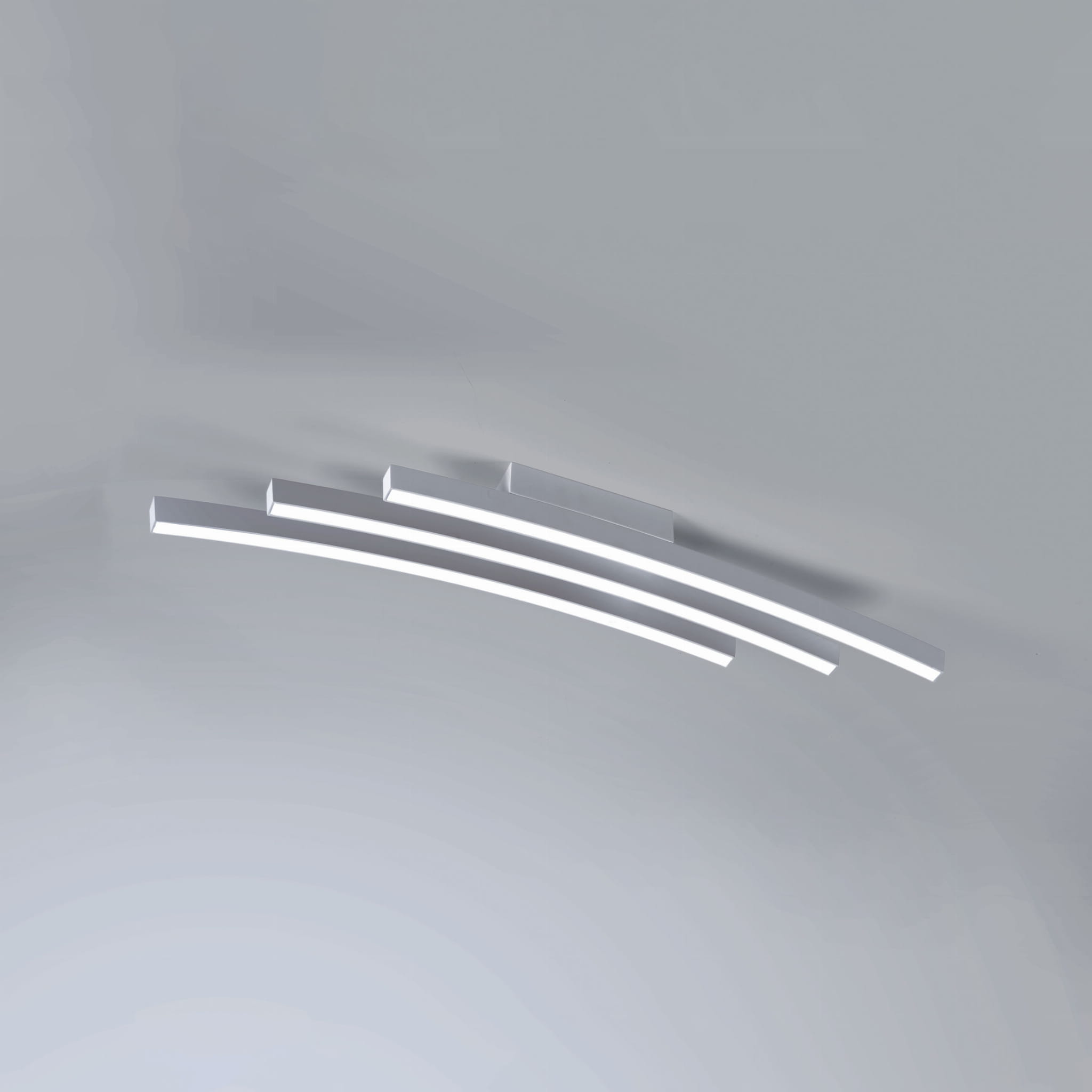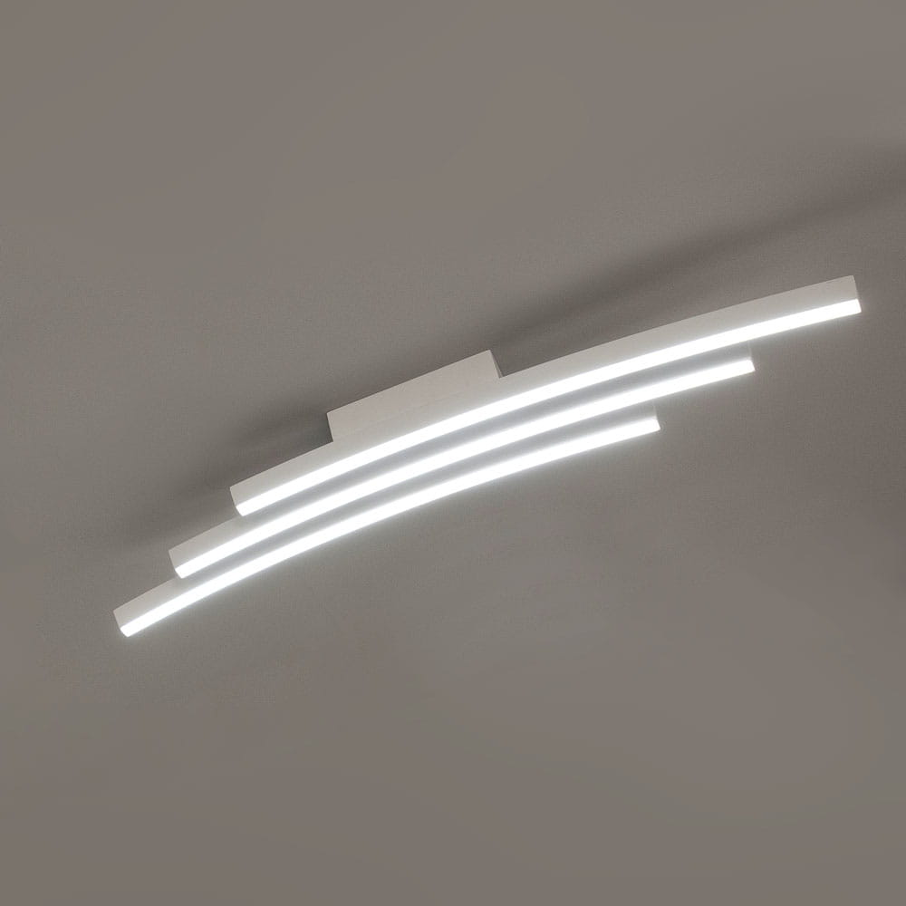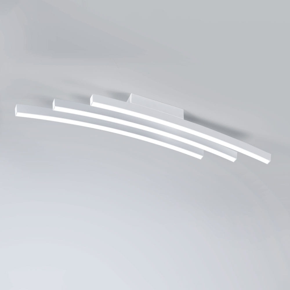 Biała lampa sufitowa trzy lekko pochylone listwy Vivida International 0041.20.BI Bow LED 36W 3000K 80cm