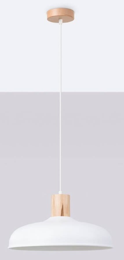 Biała lampa wisząca do kuchni z dodatkiem drewna Sollux Lighting SL.1323 Indy E27 38cm
