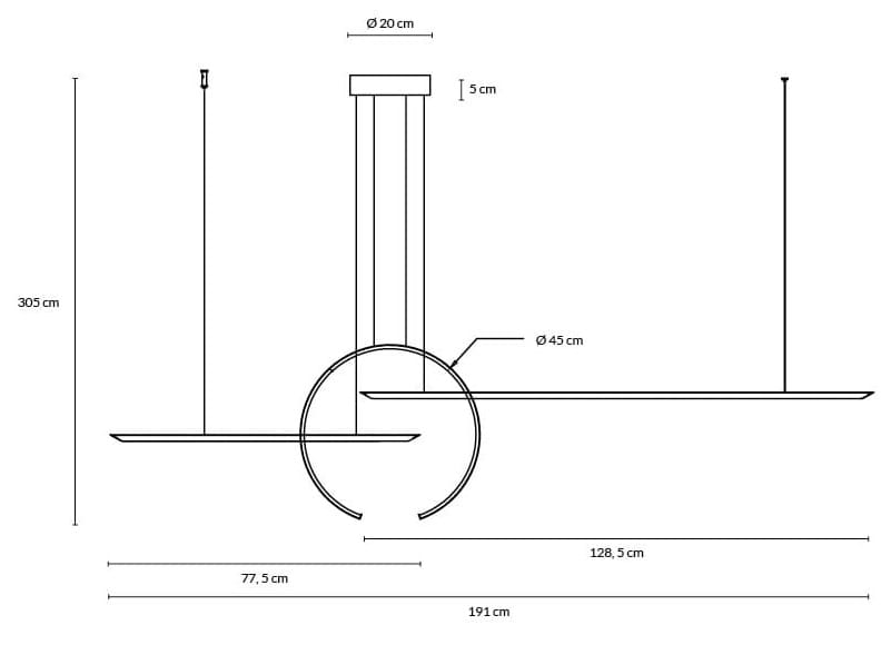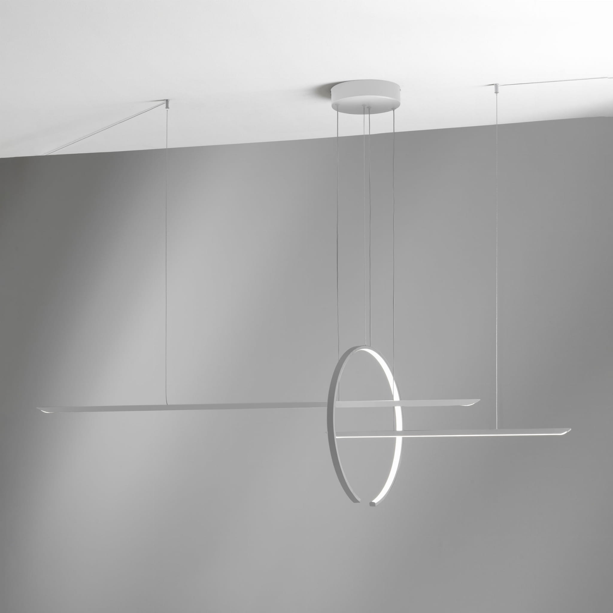 Biała lampa wisząca dwie listwy i okrąg Vivida International 0078.30.BI WN In&Out LED 52W 3000K/4000K 191cm