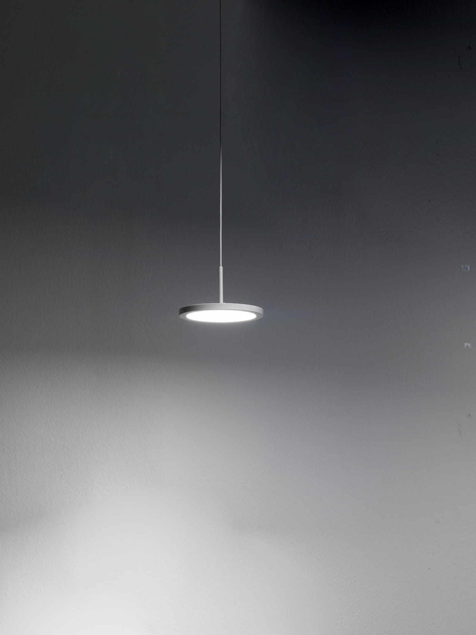 Biała lampa wisząca z płaskim okrągłym kloszem Vivida International 0073.30.BI WN Mystery LED 9W 3000-4000K 13cm