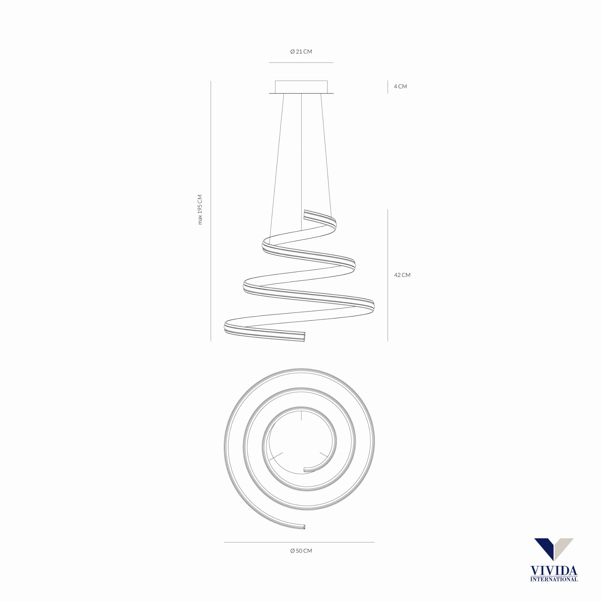 Biała nowoczesna spiralna lampa wisząca Vivida International 0036.30 DIM W Spiral LED 40W 3000K 50cm ściemnialna
