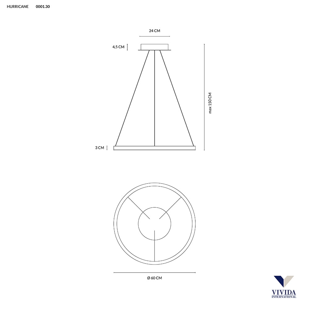 Biała okrągła lampa wisząca obręcz ring Vivida International 0001.30 DIM Hurricane LED 38W 3000K 60cm ściemnialna