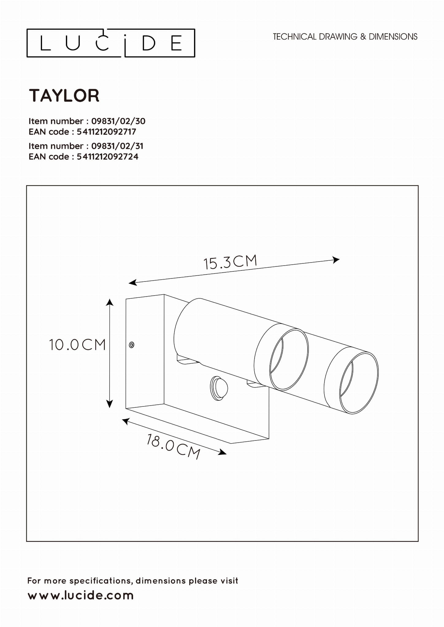 | Klasa szczelności | IP44 (dowiedz się więcej) Lampa Taylor posiada dodatkowe uszczelnienie przed bryzgami wody z dowolnego kierunku oraz dostępem do wnętrza palcem lub drutem. |