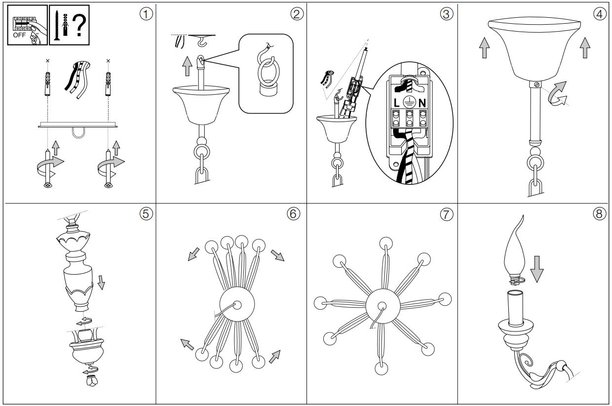 Biało złoty klasyczny włoski masywny żyrandol Ideal Lux 012872 Firenze 8xE14 64cm x 105cm