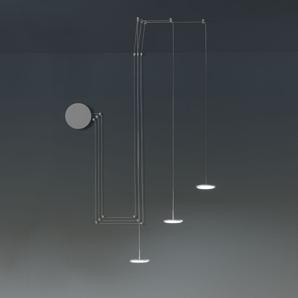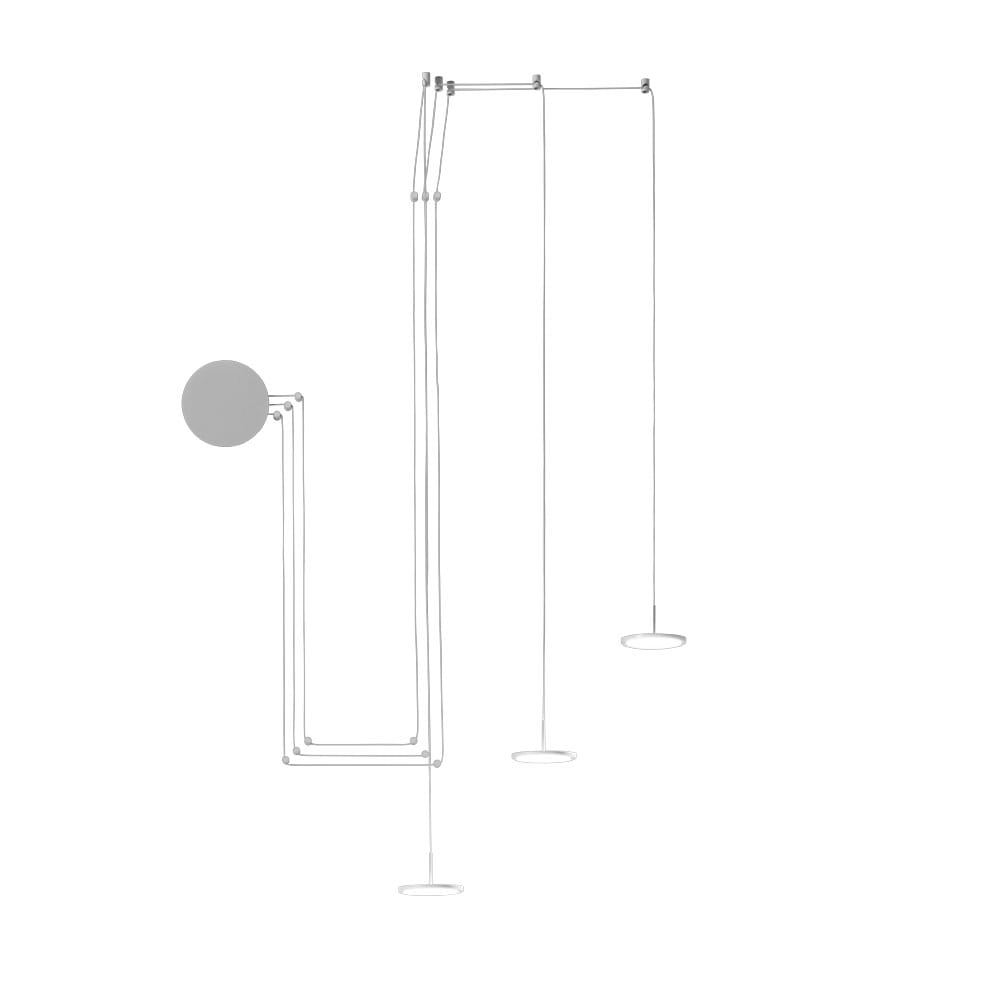 Biały długi podwieszany kinkiet z trzema reflektorami lampa ścienno sufitowa Vivida International 0073.34.BI WN Mystery LED 30W 3000K/4000K kable 5m