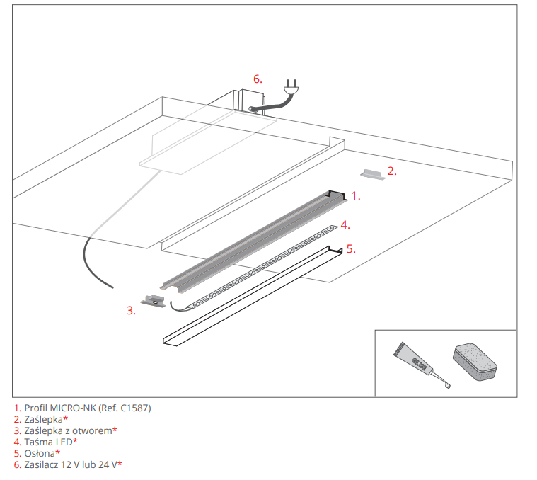Profil LED Micro-NK - elegancja i funkcjonalność w jednymProfil Micro-NK marki Kluś Design to nowoczesne rozwiązanie stworzone z myślą o zabudowie meblowej. Dzięki możliwości montażu we frezie staje się niemal niewidoczny, a jednocześnie pozwala uzyskać profesjonalny efekt oświetlenia w każdym wnętrzu. Montaż dopasowany do Twoich potrzebWewnątrz profilu można umieścić taśmę LED, którą następnie przykrywa się dedykowanym kloszem. Sam profil można docinać do dowolnej długości, co daje pełną swobodę projektowania. Instalacja możliwa jest zarówno we wpustach, jak i za pomocą kleju montażowego czy taśmy dwustronnej. To proste i uniwersalne rozwiązanie, które sprawdzi się w wielu aranżacjach. Odporność i bezpieczeństwo w wilgotnych pomieszczeniachMicro-NK można uszczelnić do standardu IP67, co otwiera drogę do zastosowania nawet w łazienkach i innych pomieszczeniach o podwyższonej wilgotności. Aluminium, z którego został wykonany profil, jest materiałem odpornym na korozję, dzięki czemu nie rdzewieje i zachowuje swoje właściwości przez długie lata. Kompatybilność z szerokimi taśmami LEDWnętrze profilu zostało zaprojektowane tak, aby pomieścić taśmy LED o szerokości aż 15,2 mm. To oznacza, że bez problemu zmieści się tam niemal każda dostępna na rynku taśma - zarówno standardowa, jak i szersze wersje RGB czy RGBW. Smukła konstrukcja - zaledwie 6 mm wysokościProfil Micro-NK jest wyjątkowo płytki, jego całkowita wysokość to jedynie 6 mm. Dzięki temu świetnie wpasowuje się w meble i zabudowy, nie zaburzając ich formy i estetyki. ZastosowaniaTen model sprawdzi się w wielu aranżacjach: