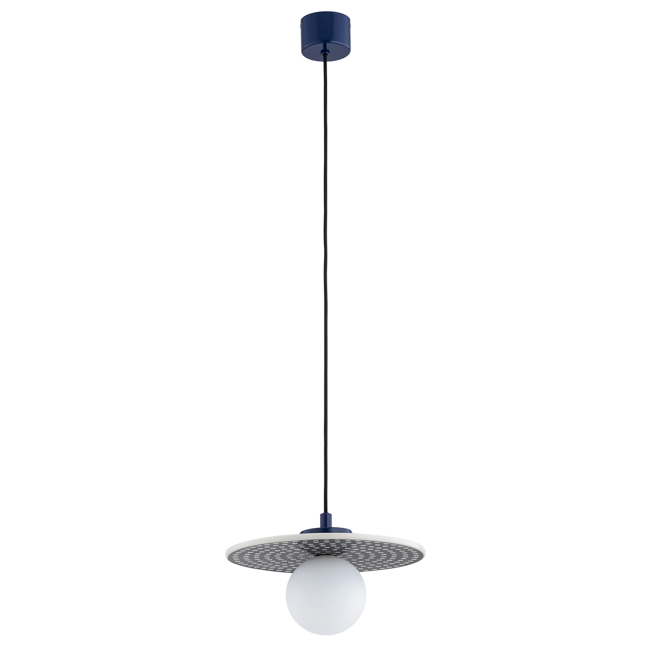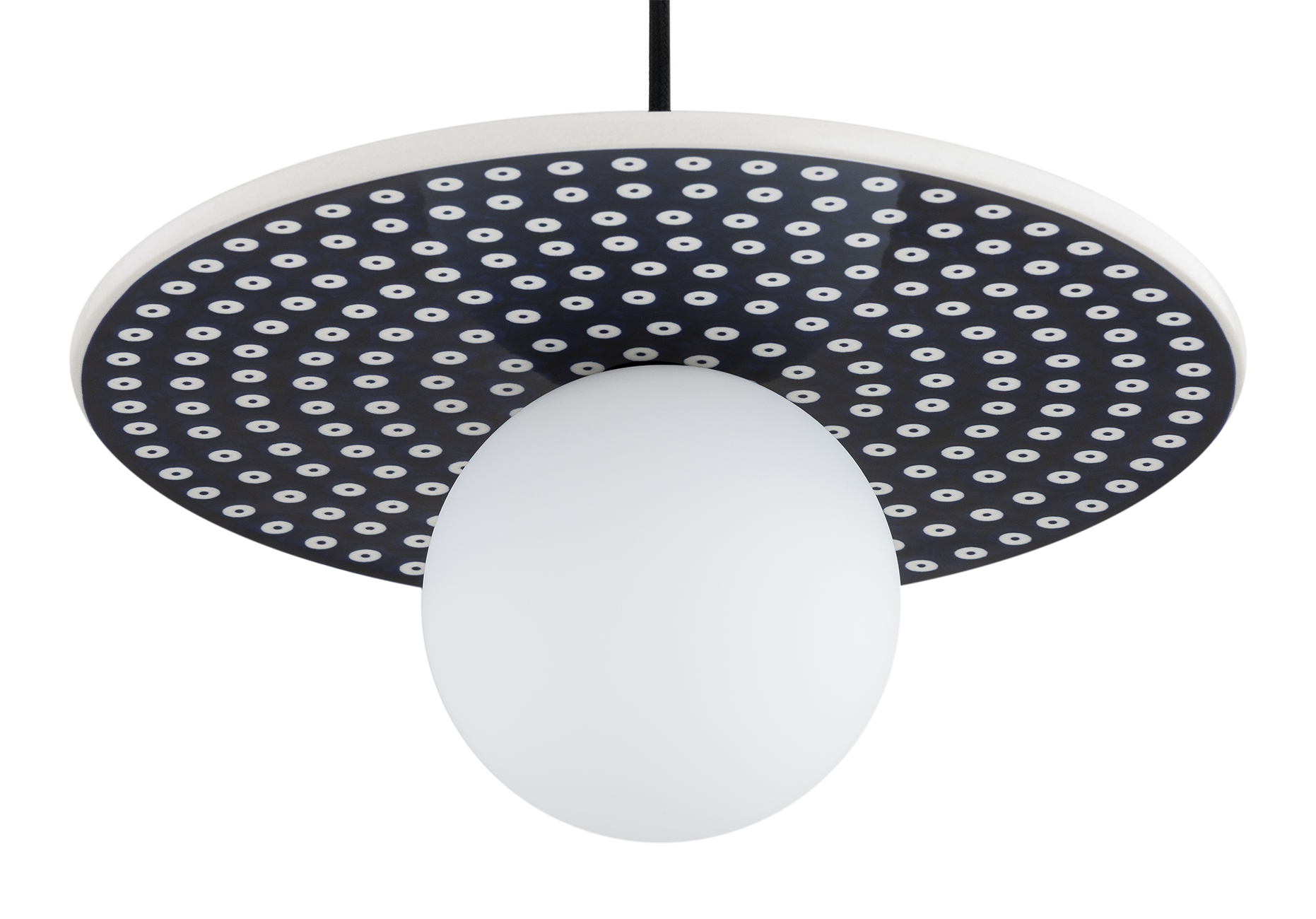 Ceramiczna lampa wisząca Bolesławiec granat z białymi stemplami i klosz kula szklana Argon 8950 Boll G9 IP44