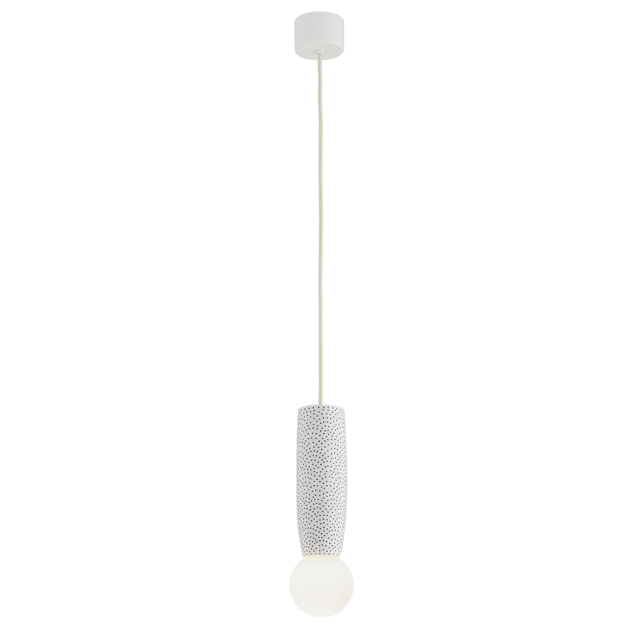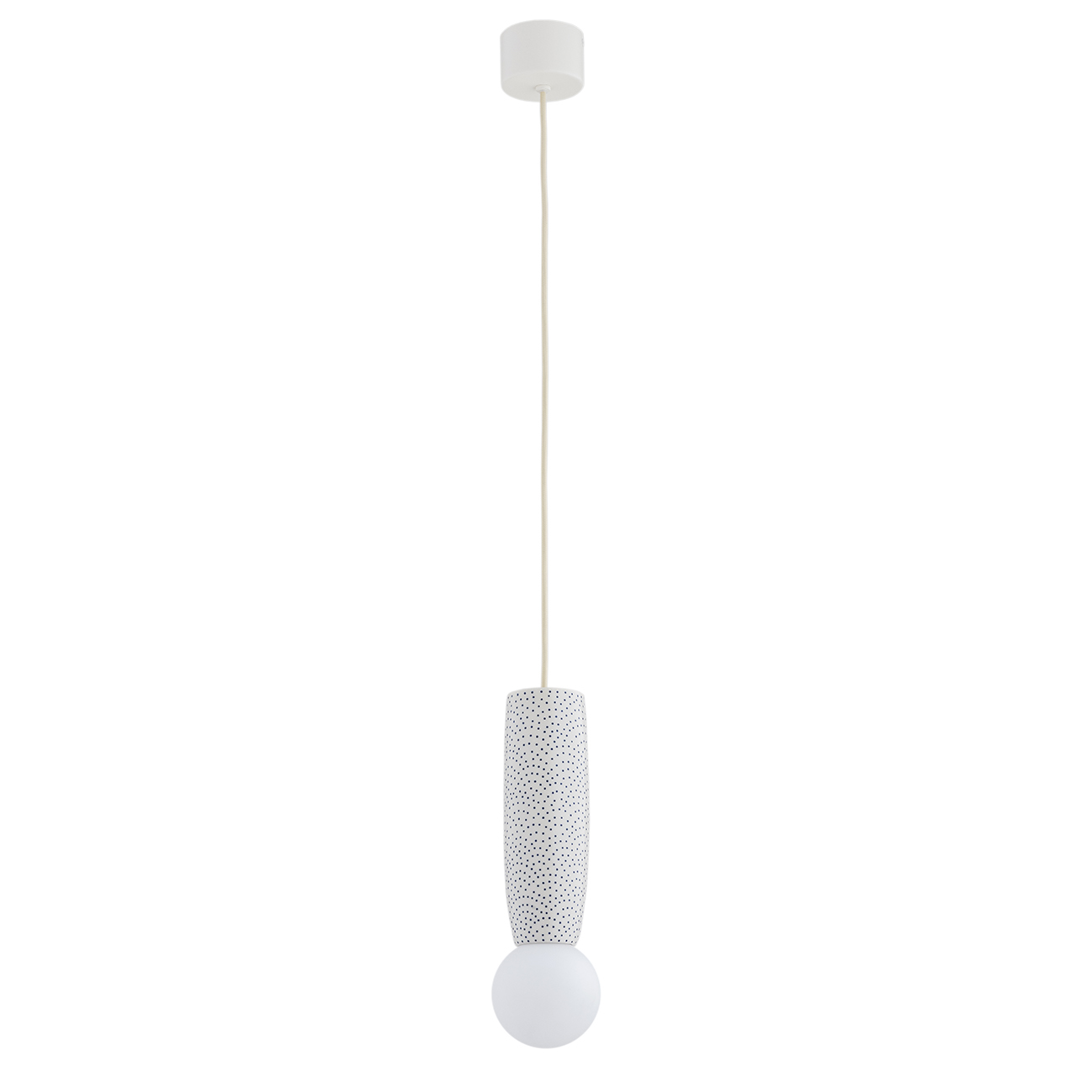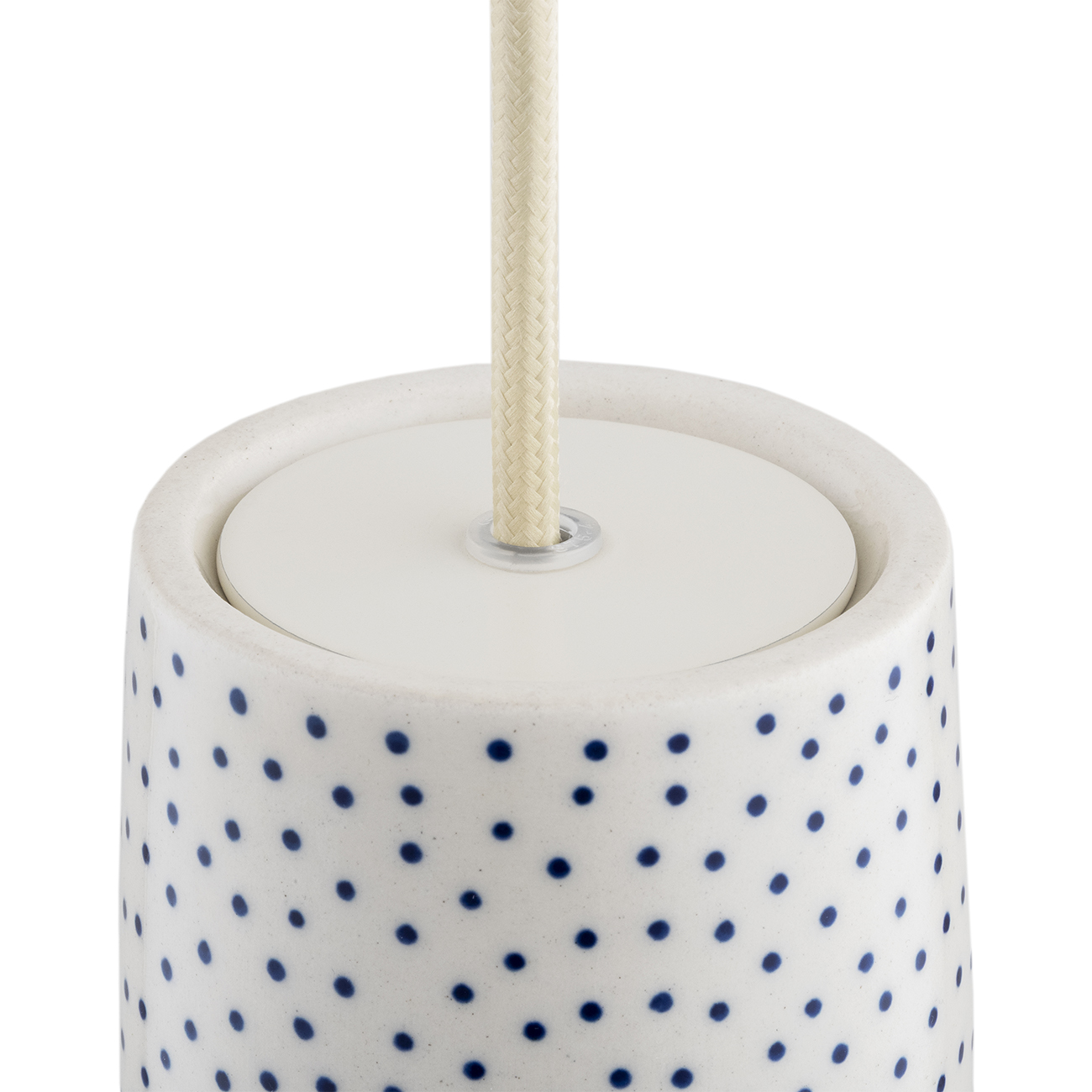 Ceramiczna lampa wisząca Bolesławiec kremowy z granatowymi stemplami i klosz kula szklana Argon 8938 Boll G9 IP44