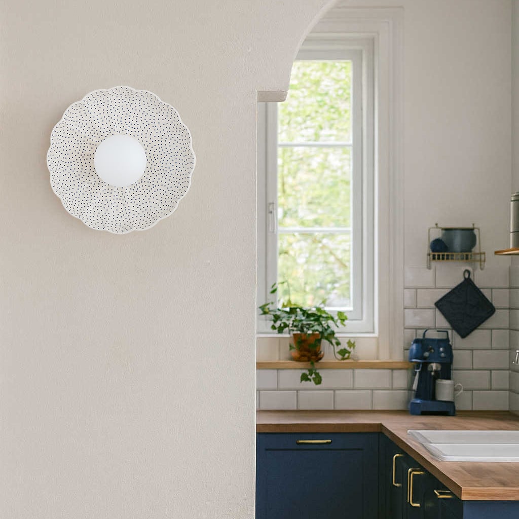 Ceramiczny kinkiet Bolesławiec kremowy w granatowe stemple Argon 8934 Boll G9 IP44