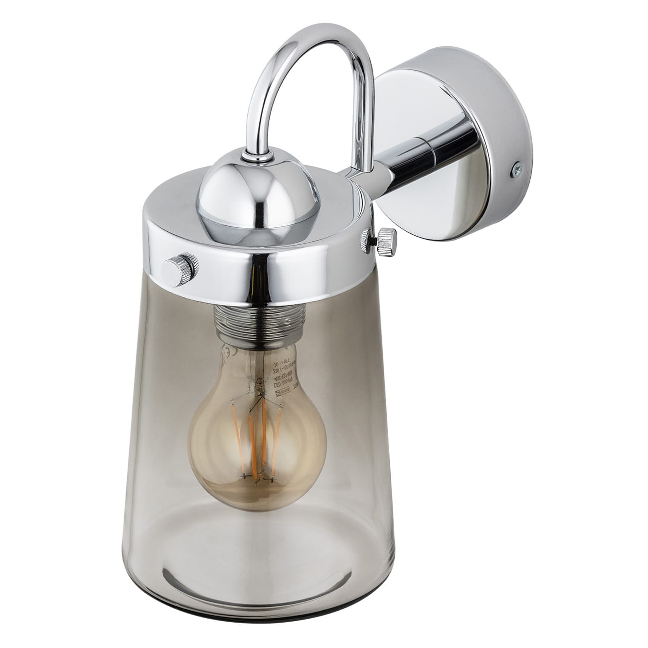 Chromowana lampa ścienna kinkiet z szklanym dymnym kloszem Argon 4718 Pasadena E27