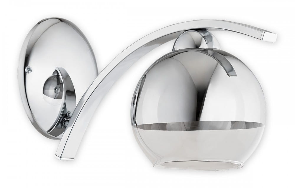 Chromowany kinkiet ścienny z chromowanym do połowy kulistym kloszem Lemir O2520 K1 CH Leo E27