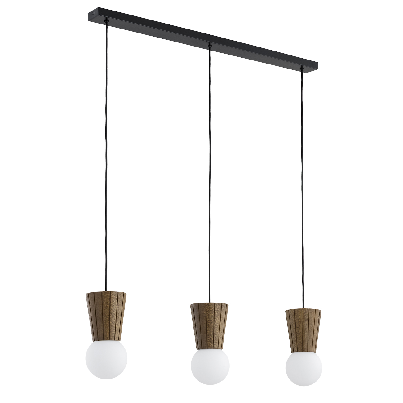 Ciemna dębowa lampa wisząca łazienkowa z kloszami szklanymi kulami Argon 6358 Volante 3xG9 IP44