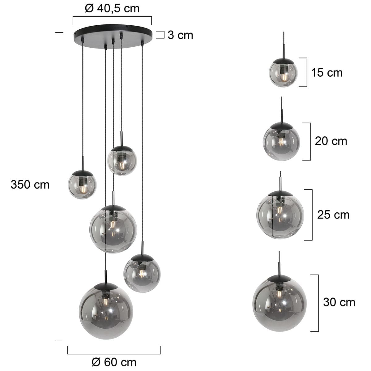 Czarna industrialna lampa sufitowa plafon przydymione klosze Steinhauer 2730ZW Bollique 5xE27 60cm