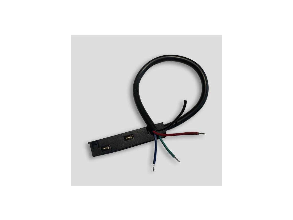Opis przewodów w końcówce zasilającej KamaKońcówka zasilająca do szynoprzewodów magnetycznych służy do doprowadzenia napięcia z zasilacza do szyny. Jest przeznaczona do współpracy z zasilaczem zewnętrznym. Element składa się z wtyczki, którą można wpiąć w szynę w dowolnym miejscu - daje to dużą elastyczność przy projektowaniu instalacji i rozmieszczeniu punktów zasilania. Z wtyczki wyprowadzony jest przewód czterożyłowy, który należy podłączyć do zasilacza zgodnie z odpowiednią polaryzacją (opisaną w dalszej części). Jeżeli długość przewodu okaże się niewystarczająca, można go bez problemu przedłużyć - najlepiej, aby zrobił to elektryk, zachowując właściwe przekroje przewodów oraz poprawne połączenia.