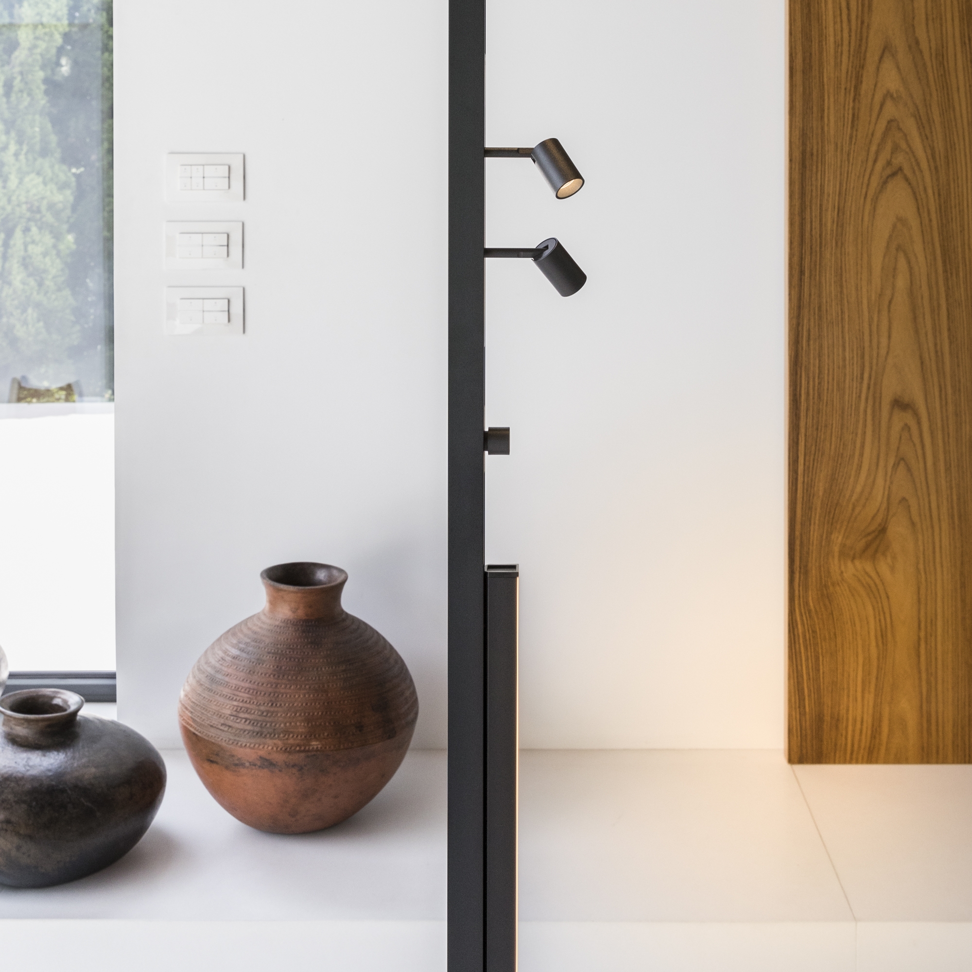 Czarna lampa stojąca z pionowym szynoprzewodem magnetycznym Ideal Lux 344775 Ego 201cm