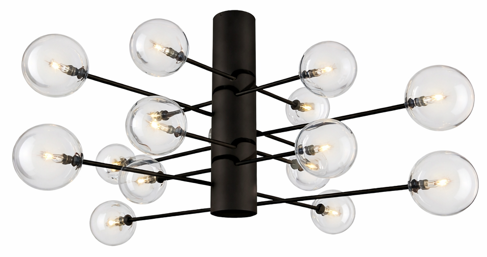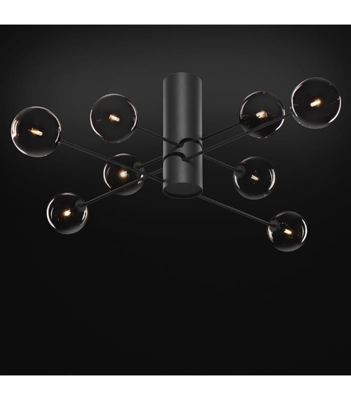 Czarna lampa sufitowa z rozległymi ramionami i kloszami kulami Ramko 66340 Oslo 16xG4 130cm
