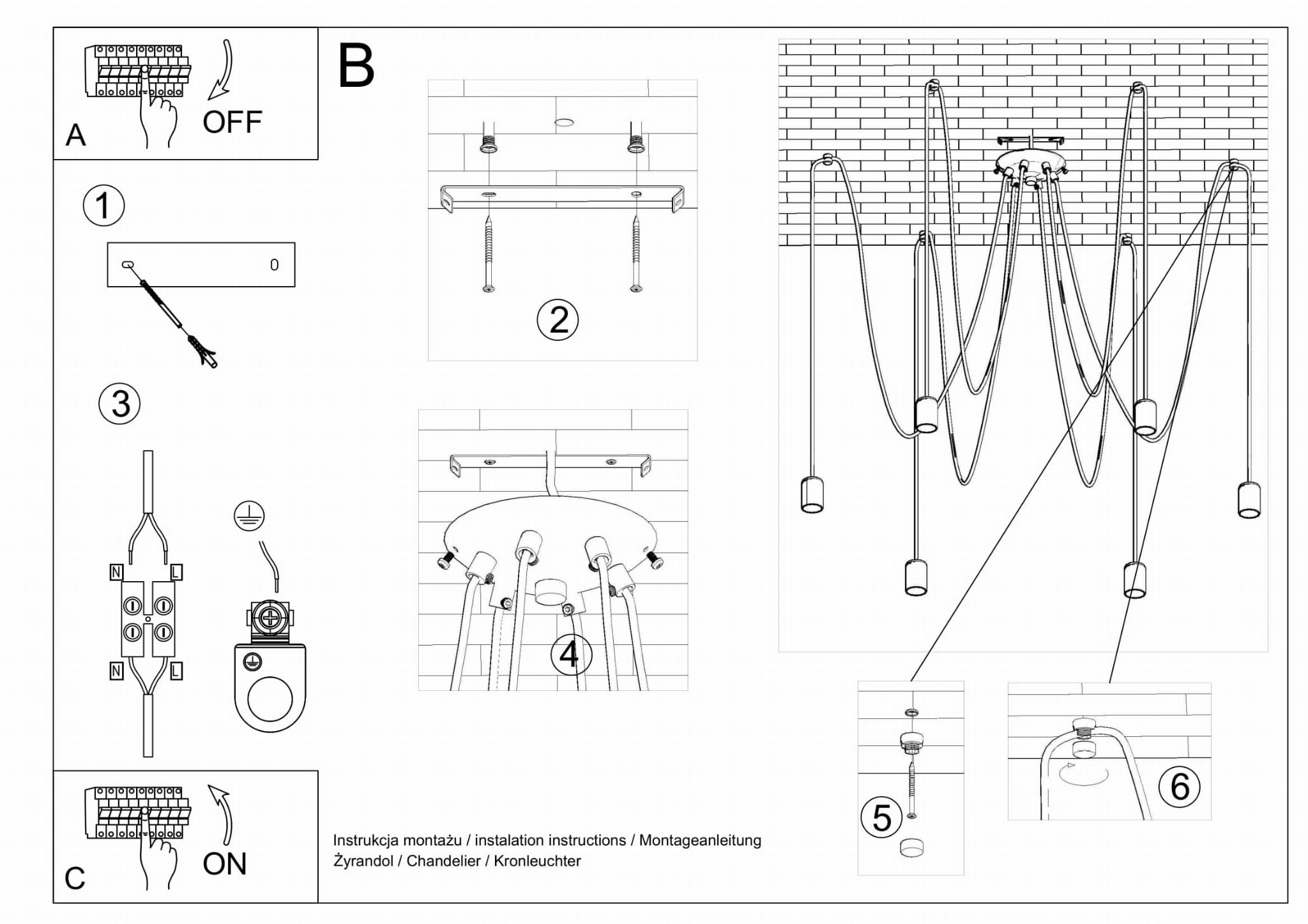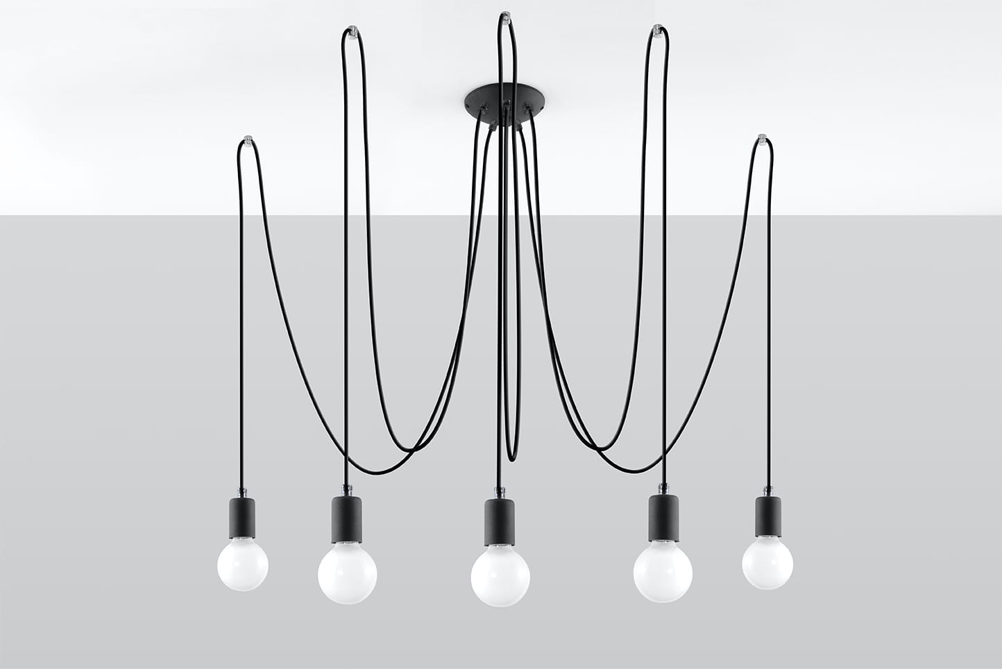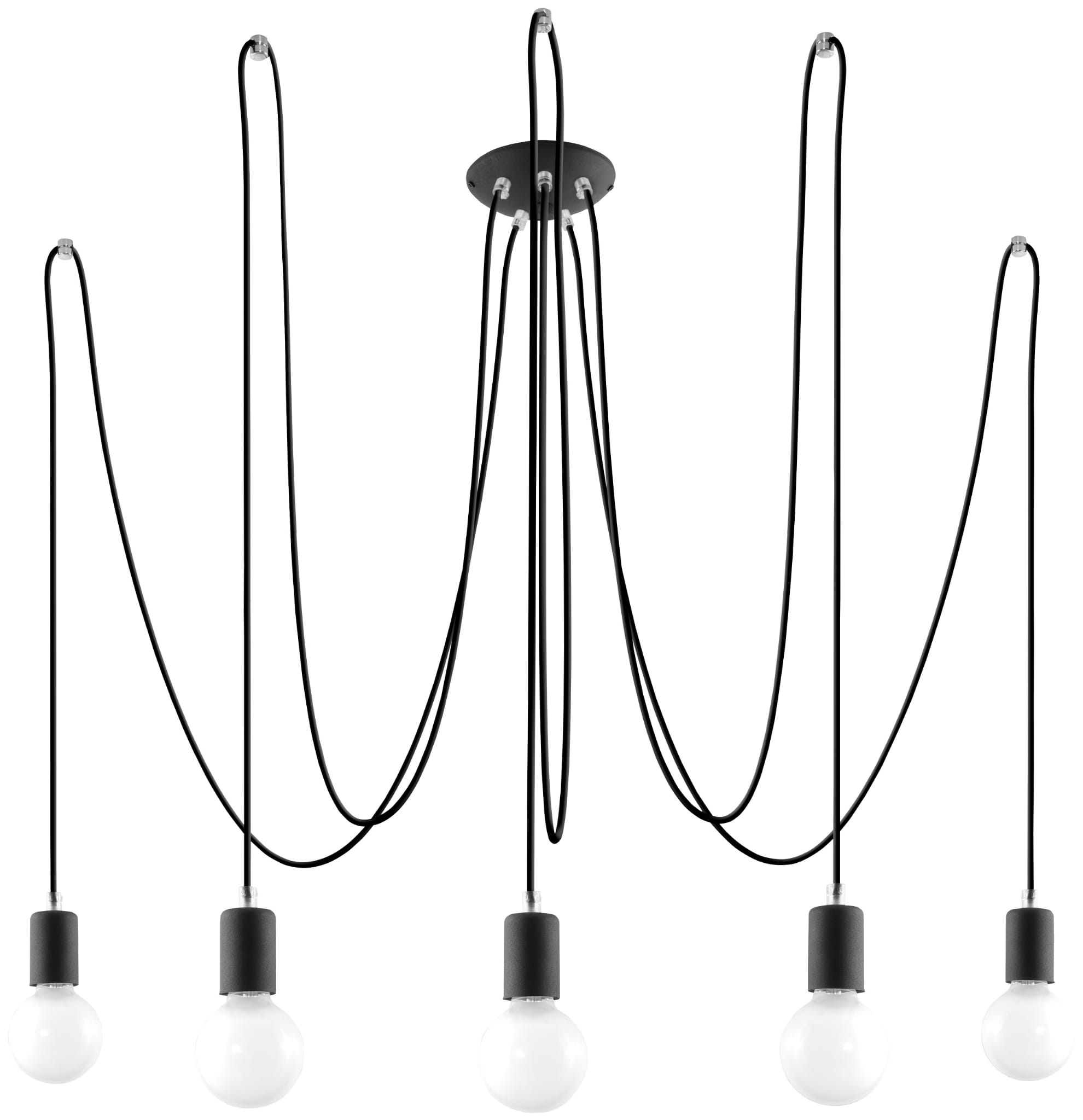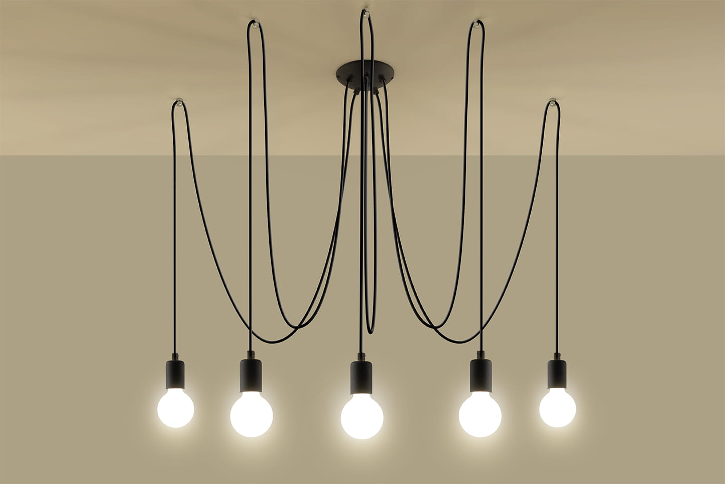 Czarna lampa wisząca typu pająk z pięcioma 3-metrowymi linkami Sollux Lighting SL.0371 Edison 5xE27
