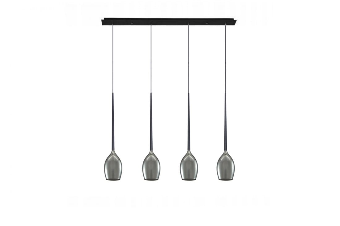 Czarna lampa wisząca z czterema dymnymi kloszami na listwie Azzardo AZ2938 Izza 4xE14 107cm