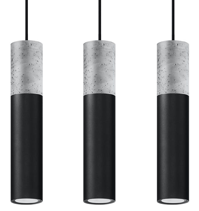 Czarna lampa wisząca z trzema walcami z dodatkiem betonu Sollux Lighting SL.0652 Borgio 3xGU10