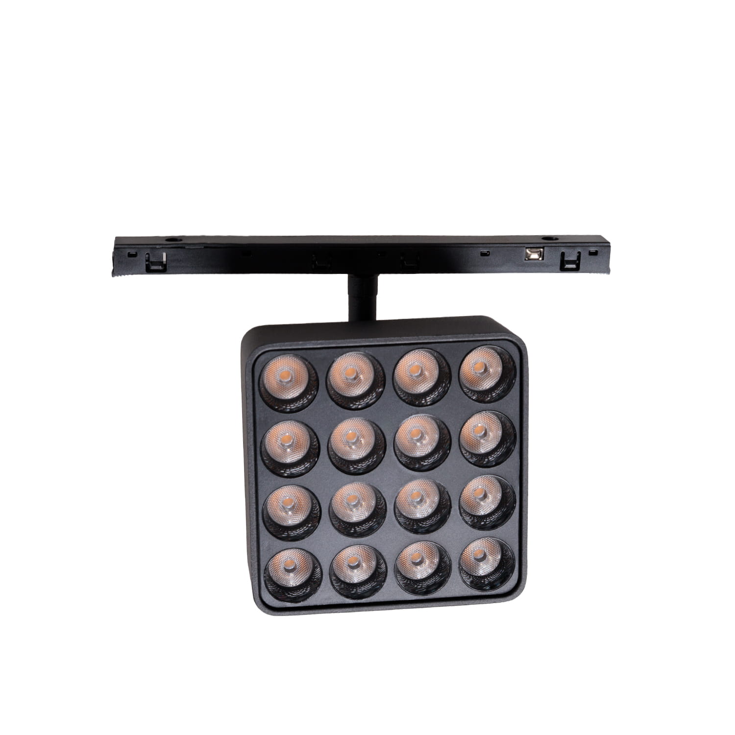 Kwadratowa lampa z diodami LEDKwadratowa lampa z diodami LED to ciekawa propozycja o walorach dekoracyjnych, przeznaczona dla osób poszukujących bardziej oryginalnych rozwiązań w systemach oświetlenia magnetycznego. Jej nietypowy kształt wyróżnia ją na tle standardowych opraw, a punktowe źródło światła pozwala precyzyjnie doświetlić wybrane miejsca, takie jak blaty, stoły, szafki czy elementy dekoracyjne wnętrza. Dzięki głębszemu osadzeniu diod w czarnej optyce, lampa nie oślepia przy patrzeniu z boku, co zwiększa komfort użytkowania i nadaje jej elegancki wygląd. Szynoprzewody magnetyczne płytkie Micro11Szynoprzewody magnetyczne Micro11 to smukła i niska seria marki Max Light, stanowiąca alternatywę dla klasycznego, głębszego systemu Magnetic. Charakteryzuje się minimalistycznym wyglądem i występuje w trzech wariantach: