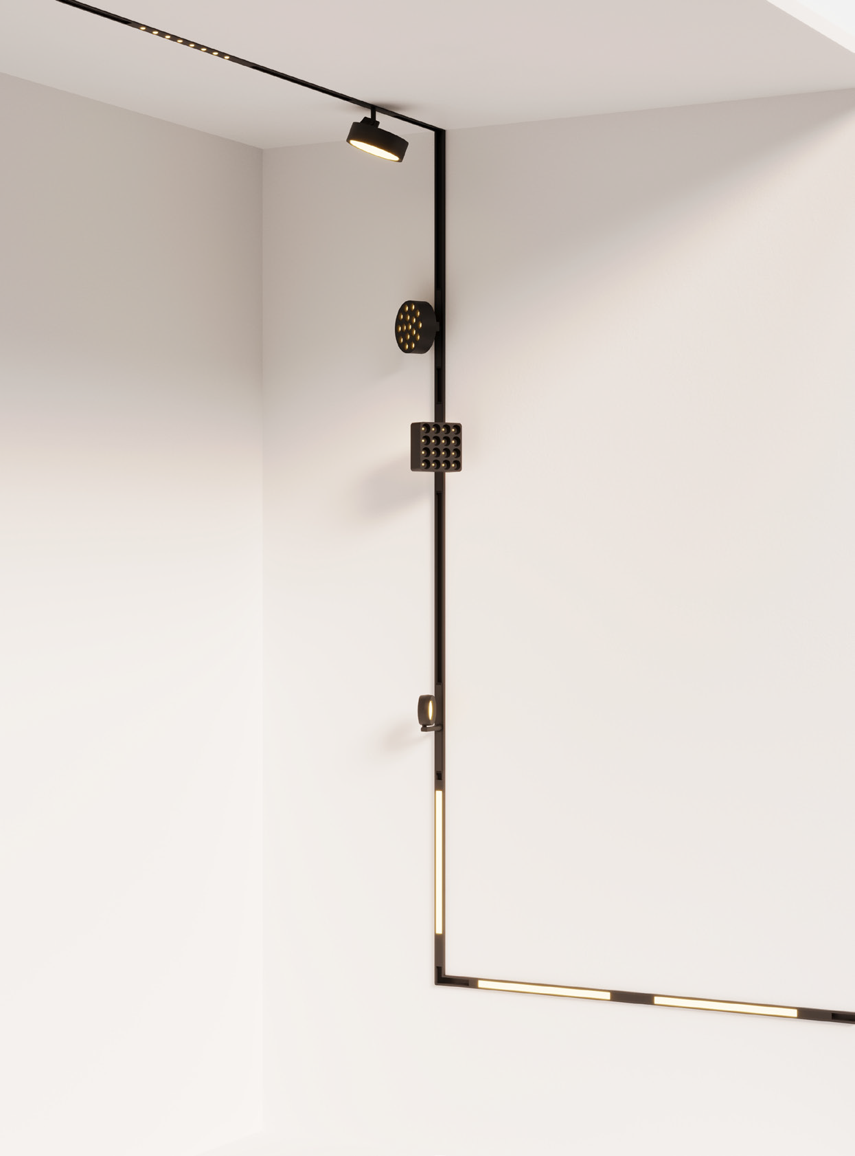 Do zasilania można wykorzystać zasilacz zewnętrzny, podłączany przez końcówkę zasilającą, lub zasilacz wewnętrzny montowany bezpośrednio w szynie. Ten drugi to wyjątkowe rozwiązanie, ponieważ mimo że jego wysokość wynosi około 3 cm i wystaje ponad poziom szyny, to wciąż jest kompaktowy jak na tak niski system - większość producentów nie oferuje tak małych zasilaczy. Oferta opraw obejmuje podstawowe modele: lampy liniowe z kloszem mlecznym lub z diodami oraz reflektory tuby z wąskim kątem świecenia. System został też poszerzony o oprawy obracane, przechylane oraz większe modele okrągłe - z kloszem mlecznym lub diodami - wszystkie w ciepłej barwie 3000K. Podobnie jak w systemie Magnetic, również tutaj dostępne są wersje lamp wyposażonych w sterownik Zigbee, który umożliwia zdalne sterowanie, w tym ściemnianie, zmianę temperatury barwowej i grupowanie. |