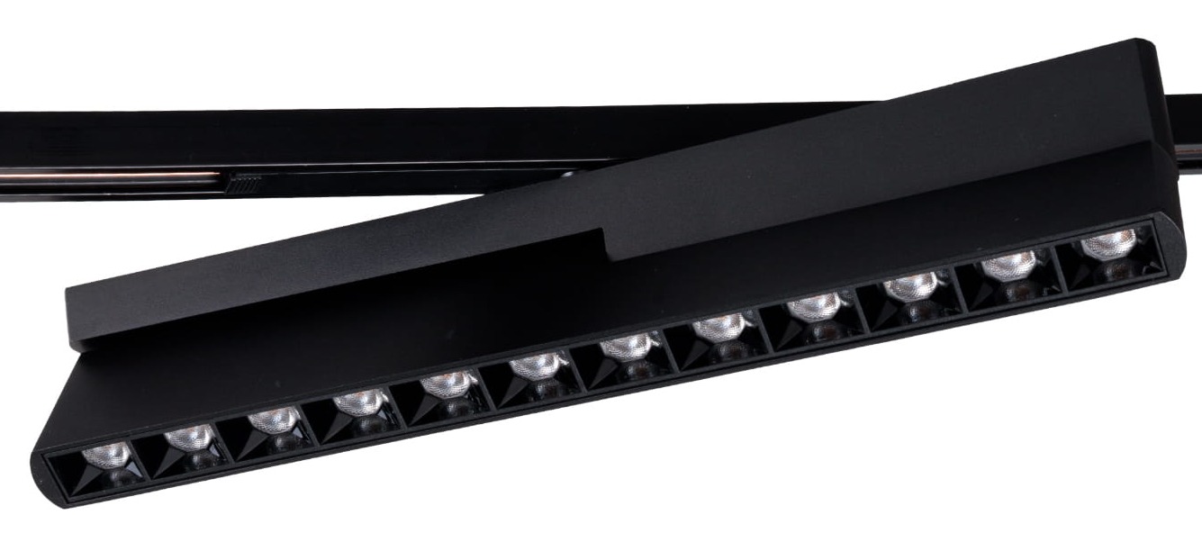 Regulowana lampa typu wallwasherLampa typu wallwasher z możliwością obrotu i przechylenia, umożliwiająca precyzyjne ukierunkowanie wąskiego strumienia światła na ścianę, zabudowę lub element dekoracyjny. Odsłonięte diody generują intensywne światło, jednak dzięki głębszemu osadzeniu w czarnej optyce, światło nie oślepia osób patrzących z boku. Szynoprzewody magnetyczne płytkie Micro11Szynoprzewody magnetyczne Micro11 to smukła i niska seria marki Max Light, stanowiąca alternatywę dla klasycznego, głębszego systemu Magnetic. Charakteryzuje się minimalistycznym wyglądem i występuje w trzech wariantach: