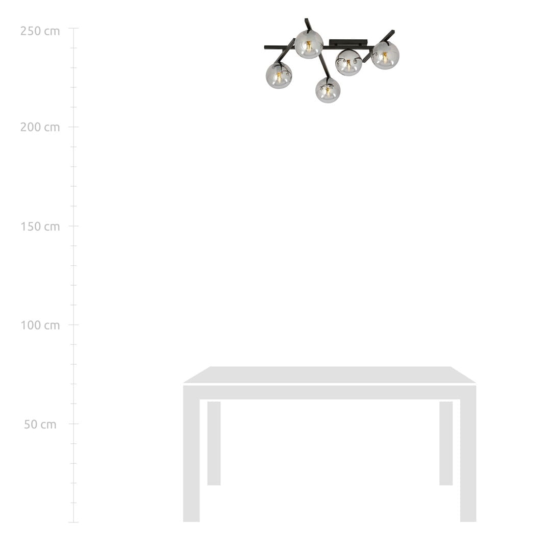 Czarna nowoczesna lampa sufitowa z metalowymi ramionami i grafitowymi kloszami kulami Emibig 1104/5 Smart 5xE14 67cm