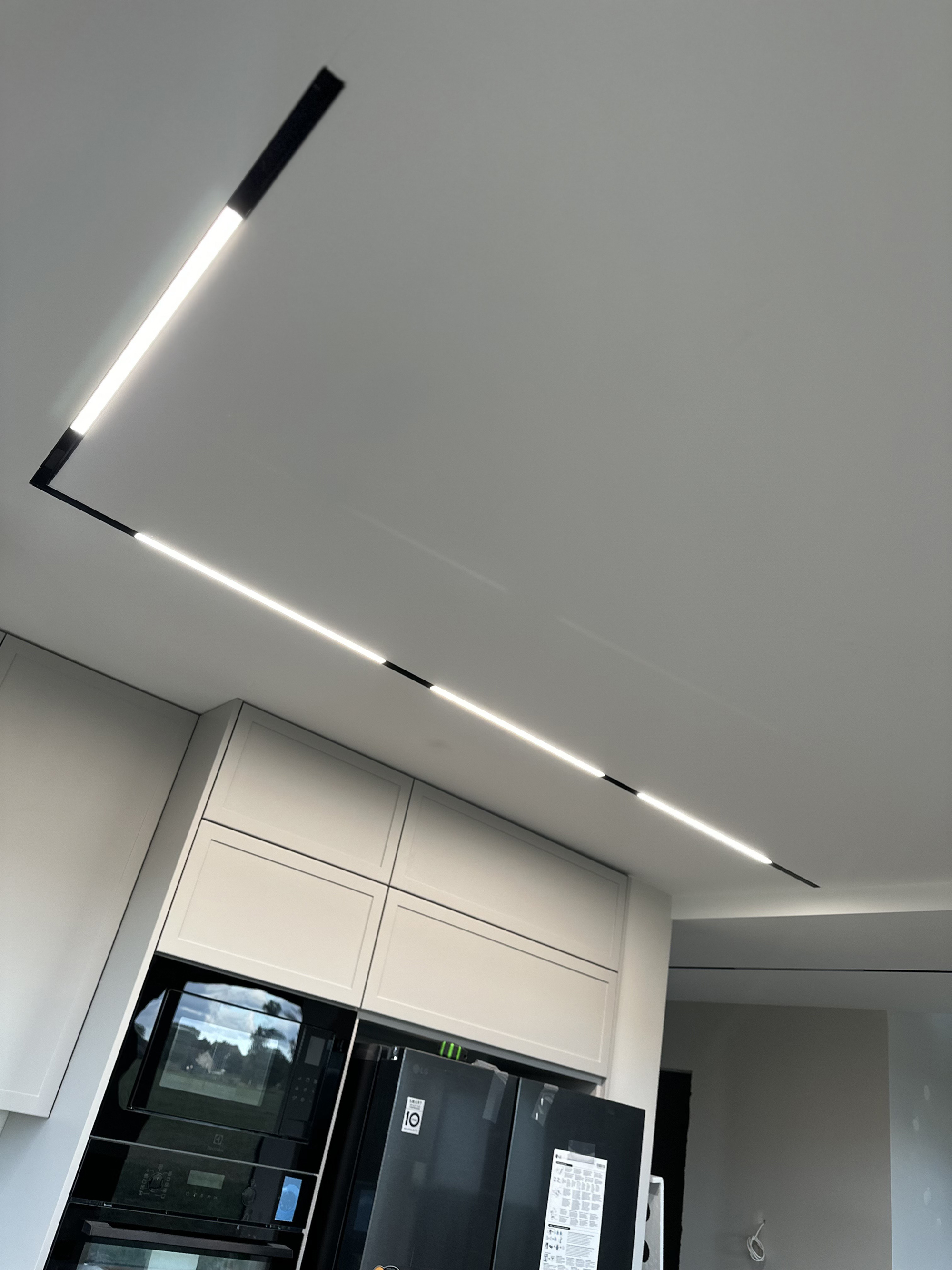 Dowiedz się więcej na temat szyn magnetycznych oraz na temat montażu podtynkowego szynoprzewodów i płyt kartonowo gipsowych. Czym jest szyna magnetyczna typu D?Szyna magnetyczna typu D przeznaczona jest do montażu w suficie podwieszanym, na pojedynczych płytach kartonowo gipsowych o grubości 9,5 mm lub 12,5 mm. Szyna umożliwia uzyskanie efektu pełnego zlicowania z sufitem, bez widocznej krawędzi lub ramki szyny. Po zamontowaniu skrzydełka są szpachlowane. Na poniższym nagraniu prezentujemy jak dobrać płytę kartonowo gipsową do danego typu szyny oraz jak powinna być montowana. Na poniższym nagraniu prezentujemy jak łączyć ze sobą kolejne szyny, aby utworzyć dowolny kształt układu szynoprzewodów. Czy szynoprzewody magnetyczne są dla Ciebie?Jeżeli nie masz pewności, czy szynoprzewody magentyczne są dla Ciebie, zapoznaj się z naszym poradnikiem jak kupić szynoprzewody magnetyczne. Dowiesz się z niego czy to rozwiązanie jest dla Ciebie odpowiednie, zrozumiesz efekty, jakie można osiągnąć, oraz będziesz mieć jasność co do kosztów i dostępności tej inwestycji. Sprawdź też jakie może być osiem problemów z szynoprzewodami magnetycznymi i jakie są ich rozwiązania. Czym są szynoprzewody magnetyczne Oxyled Multiline?Szynoprzewody Oxyled Multiline to zaawansowany system oświetlenia szynowego pracujący przy napięciu 48V (tutaj wyjaśniamy dlaczego szyny są na napięciu 48V). Znajduje się on w średnim segmencie cenowym, co oznacza, że oferowane produkty są w przystępnej cenie, przy zachowaniu wysokiej jakości wykonania oraz dobrych parametrów świetlnych. Zestaw Oxyled Multiline zyskał pierwsze miejsce w naszym rankingu szynoprzewodów magnetycznych. Przeprowadziliśmy również porównania lamp tej marki z produktami innych producentów, które zachęcamy do sprawdzenia.