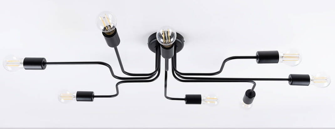 Czarna szeroka lampa sufitowa z metalowymi ramionami Sollux Lighting SL.1448 Vector 8xE27 103cm