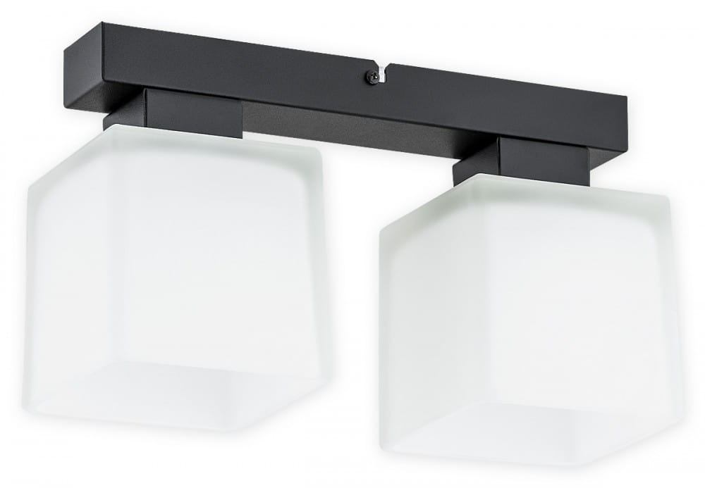 Czarny klasyczny plafon z dwoma szklanymi kloszami Lemir O2972 P2 CZA + BIA Teru 2xE27