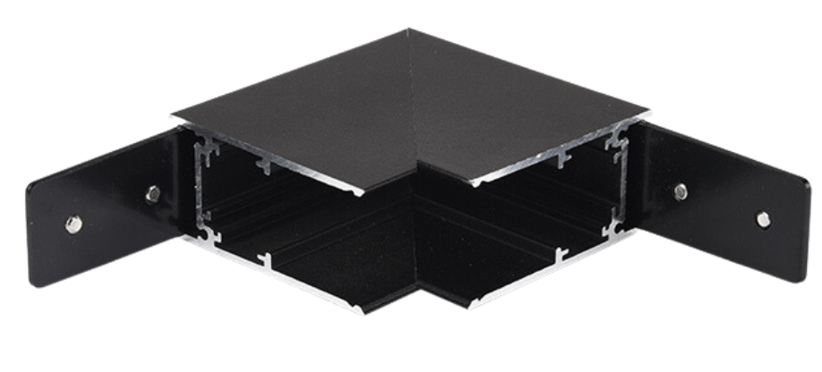Czarny łącznik metalowy pionowy L do natynkowych głębokich szynoprzewodów magnetycznych 24V Kama KL-T1001A-D-BK