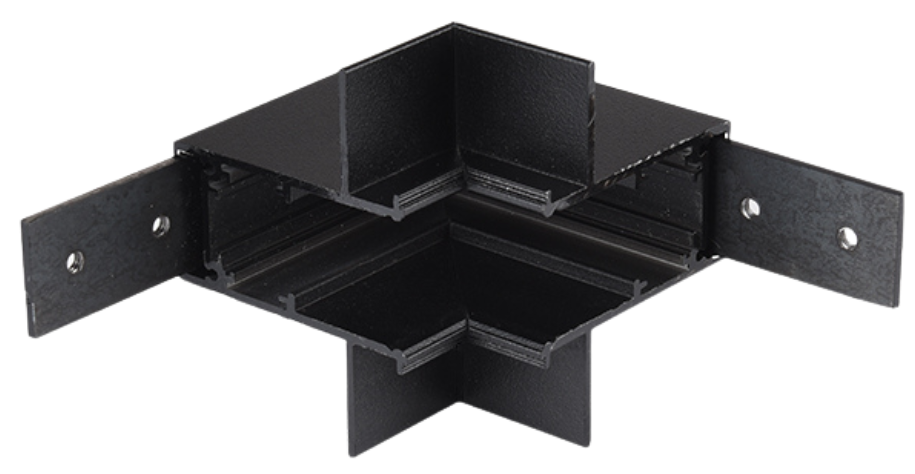 Czarny łącznik metalowy pionowy L do podtynkowych szynoprzewodów magnetycznych 24V Kama KL-T1001B-B-BK