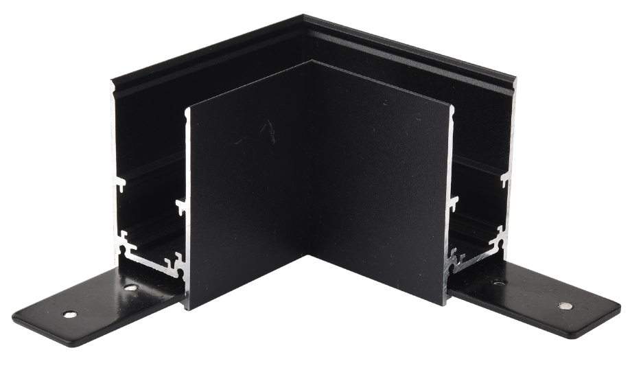 Czarny łącznik metalowy poziomy L do natynkowych głębokich szynoprzewodów magnetycznych 24V Kama KL-T1001A-C-BK