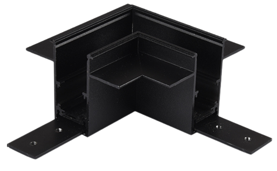 Czarny łącznik metalowy poziomy L do podtynkowych szynoprzewodów magnetycznych 24V Kama KL-T1001B-A-BK
