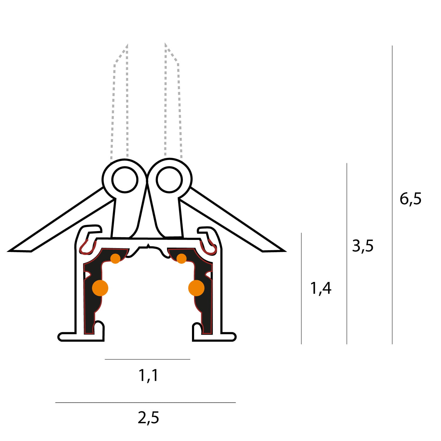 Szyna magnetyczna podtynkowa z ramkąSzyna magnetyczna podtynkowa z kołnierzem montowana jest za pomocą sprężynek, podobnie jak oprawy wpuszczane typu downlight. Delikatny rant utrzymuje szynę od frontu płyty g-k, a sprężynki stabilizują ją od tyłu. Podobnie jak wersja natynkowa, może być przycinana i łączona z kolejnymi odcinkami. W komplecie znajduje się maskownica i zaślepki końcowe. Szynoprzewody magnetyczne płytkie Micro11Szynoprzewody magnetyczne Micro11 to smukła i niska seria marki Max Light, stanowiąca alternatywę dla klasycznego, głębszego systemu Magnetic. Charakteryzuje się minimalistycznym wyglądem i występuje w trzech wariantach: