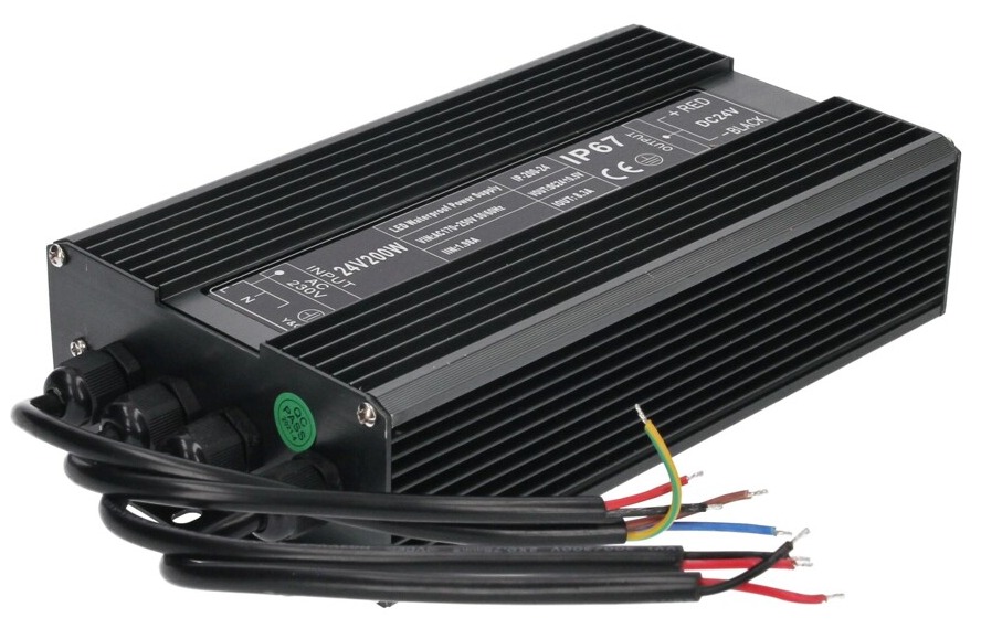 Czarny zasilacz hermetyczny 24V 200W Prescot IP-200-24 235x123x60mm