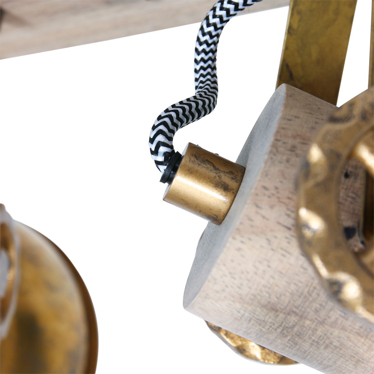 Drewniana industrialna lampa sufitowa mosiężne reflektory Mexlite 7969BR Gearwood 2xE27 27cm
