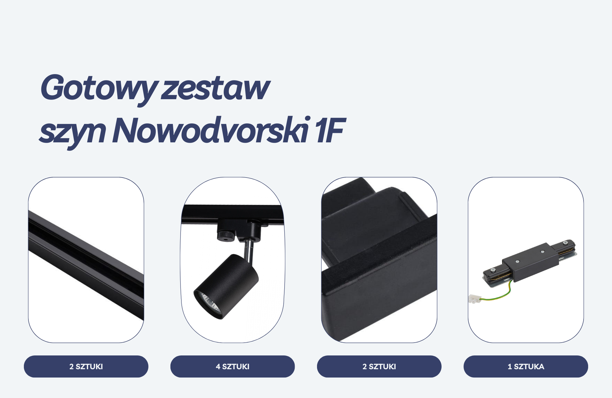 | Dodatkowe informacje | W skład zestawu wchodzą: 2 szyny 1m; 4 reflektory GU10; 2 zaślepki; 1 zasilanie środkowe. |