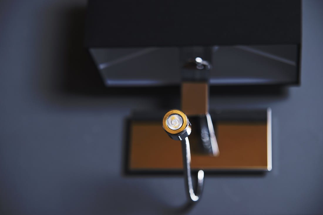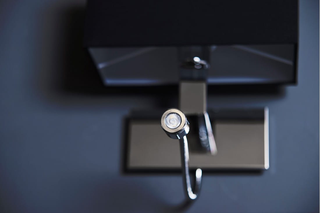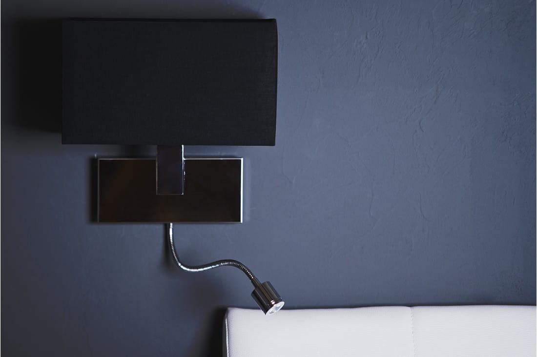 Kinkiet hotelowy chromowany stelaż z dodatkowym ramieniem i czarny abażur Azzardo AZ1558 Martens E27 i LED