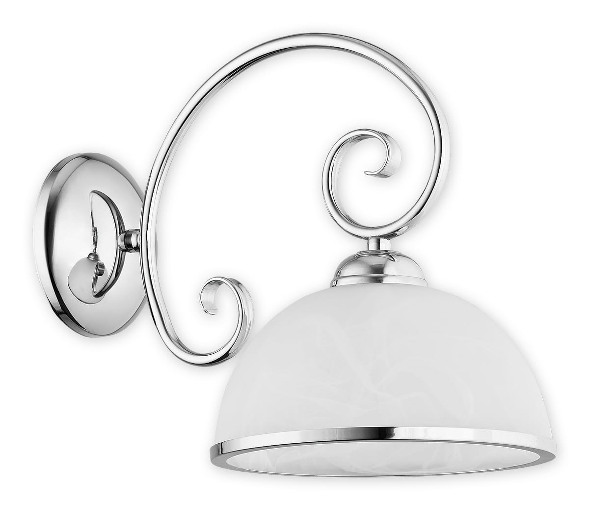 Klasyczny kinkiet z chromowanym stelażem i szklanym kloszem kopułą z ramką Lemir O2490 K1 CH Indra E27