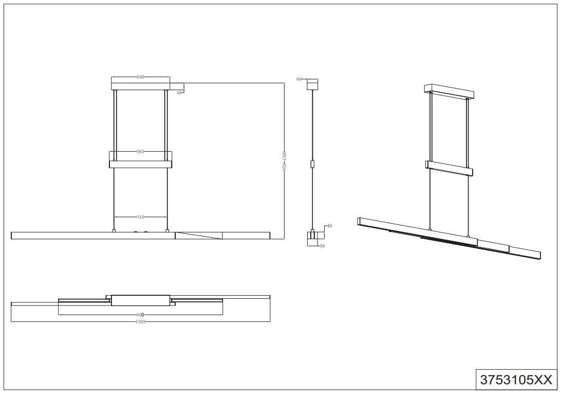 Lampa Wisząca Listwa 150cm Trio 375310508 Trajan LED 42W 2700K ściemniacz mosiądz