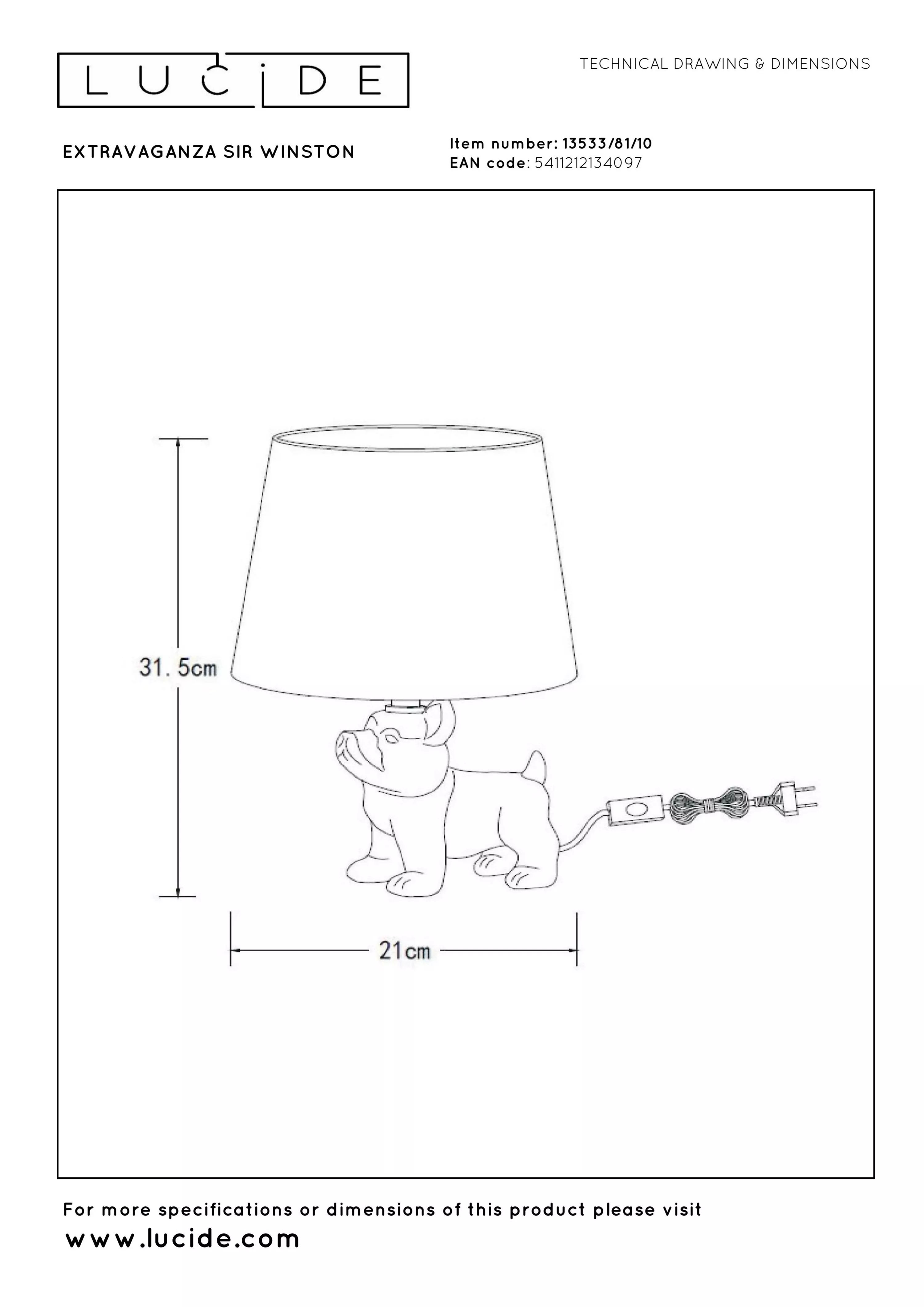 Lampa nocna z czarnym abażurem i złotym porcelanowym buldogiem Lucide 13533/81/10 Sir Winston E14