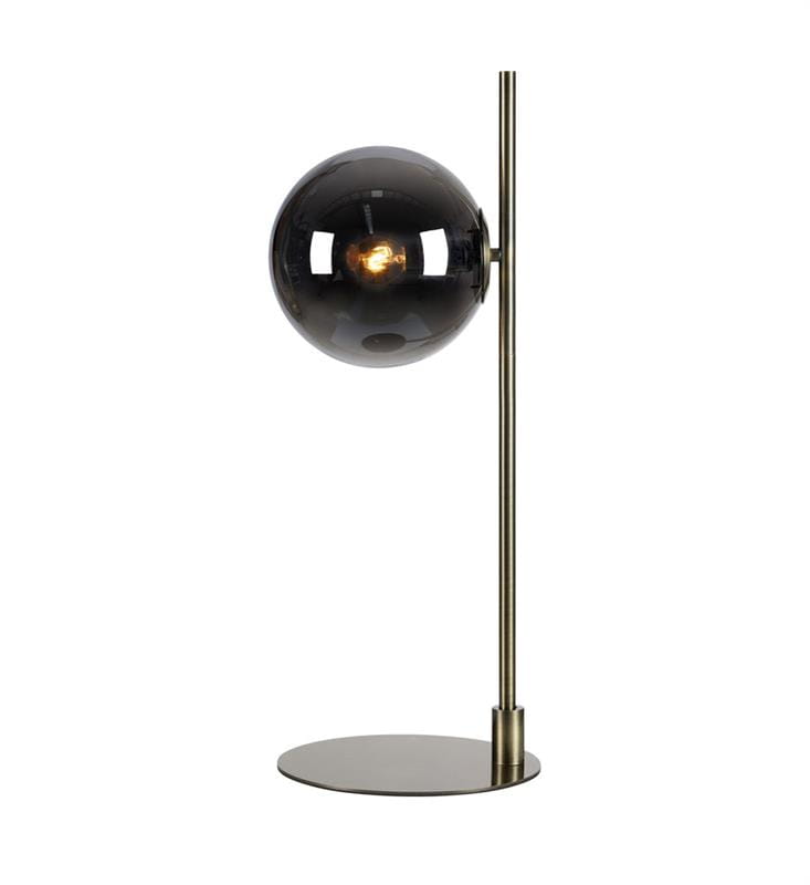 Lampa nocna z dymionym kloszem szklanym i płaska metalowa podstawa w kolorze antycznego złota MarkSlojd 108272 Dione 62,5cm