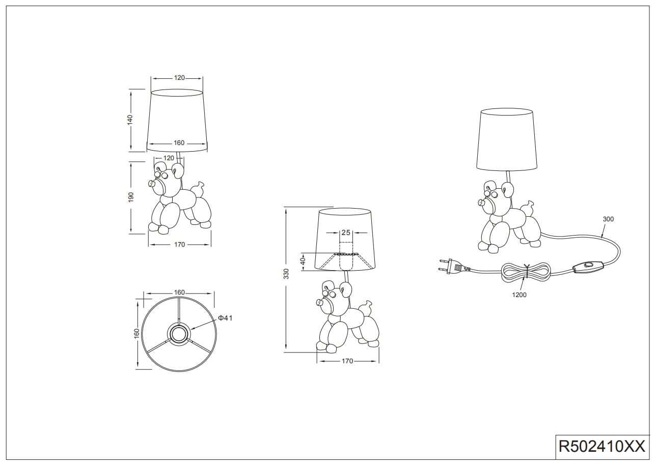 Lampa nocna złota ceramiczna podstawa piesek z czarnym abażurem RL R50241079 Bello E14