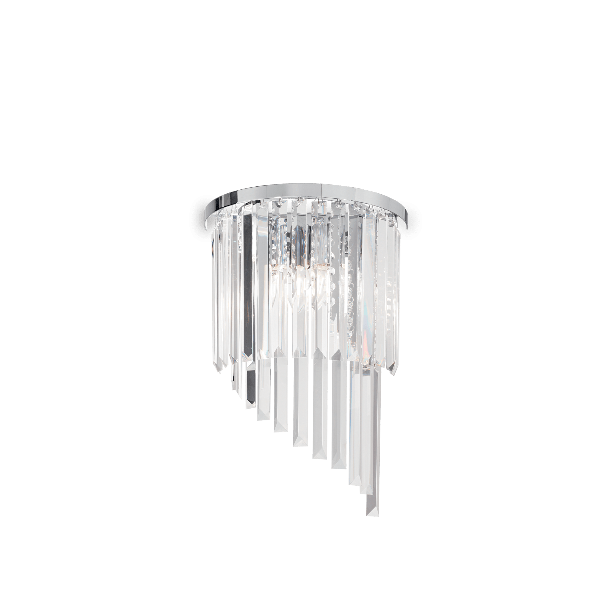 Lampa ścienna kinkiet z chromowaną ramą i kryształami na bazie półokręgu Ideal Lux 168913 Carlton 3xE14