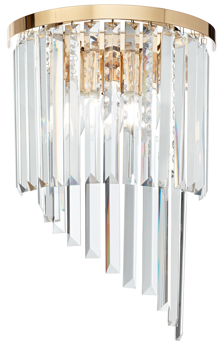 Lampa ścienna kinkiet z mosiężną ramą i kryształami na bazie półokręgu Ideal Lux 213491 Carlton 3xE14