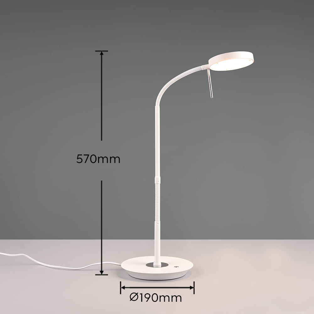 Lampa stołowa metalowa z elastycznym kloszem okrągłym biały mat Trio Lighting 523310131 Monza LED 12W 2300+3000+4000K
